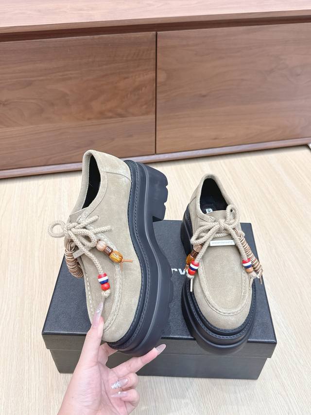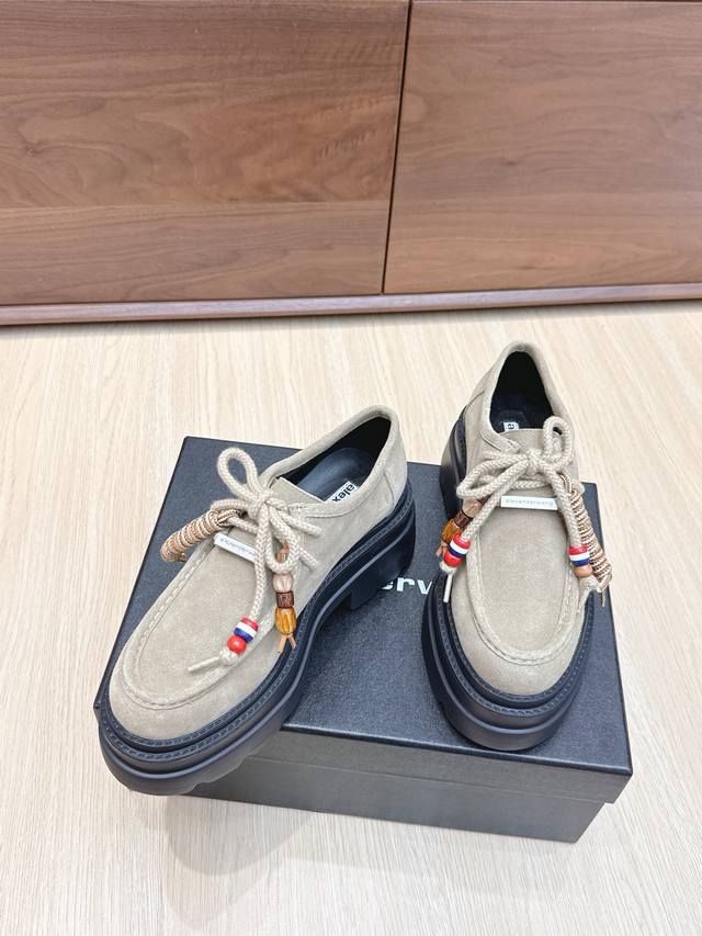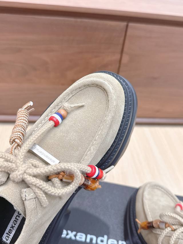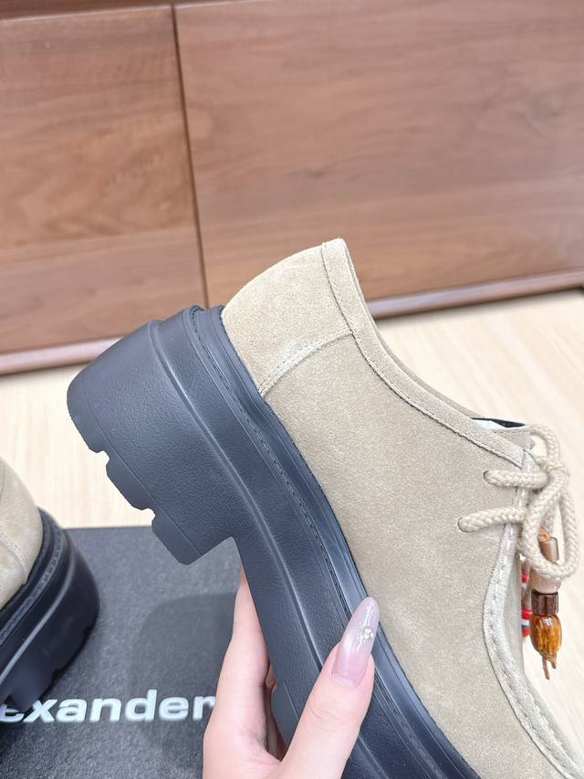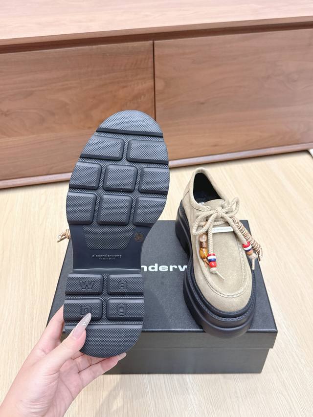 Alexander Wang tassel platform loafers. Jennie's platform loafers are amazing! Hailey Bieber is also wearing the same style! These are a stock-trading must-have! Compared to the older models, these new ones are incredibly flattering and slimming. Besides classic black, they also come in burgundy, both understated and versatile colors. The patent leather upper features the iconic brand metal logo, and the 5cm platform sole easily gives you long legs! Upper: Nude suede Lining: Sheepskin Outsole: Foam outsole Heel height: 5cm Size: 35-40 Size 40: Custom orders are non-refundable.