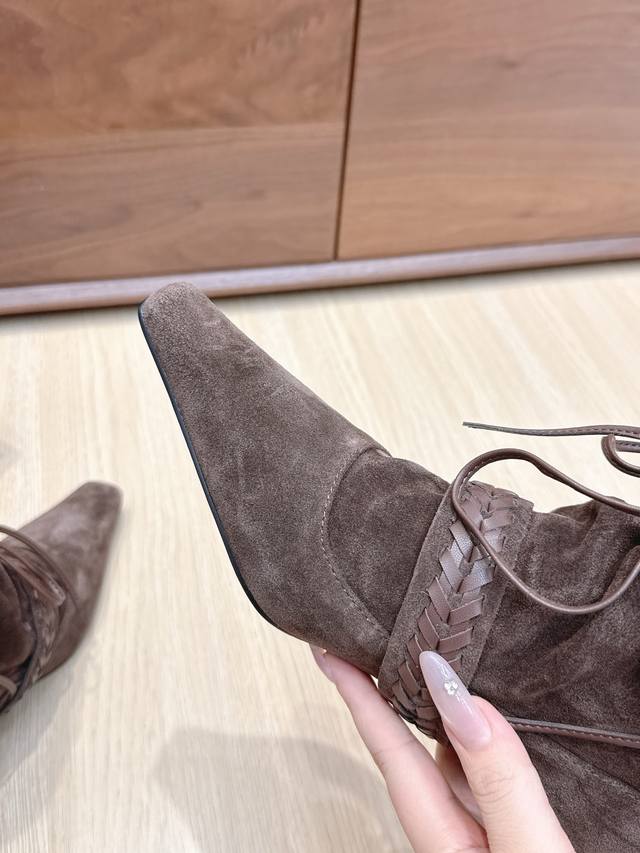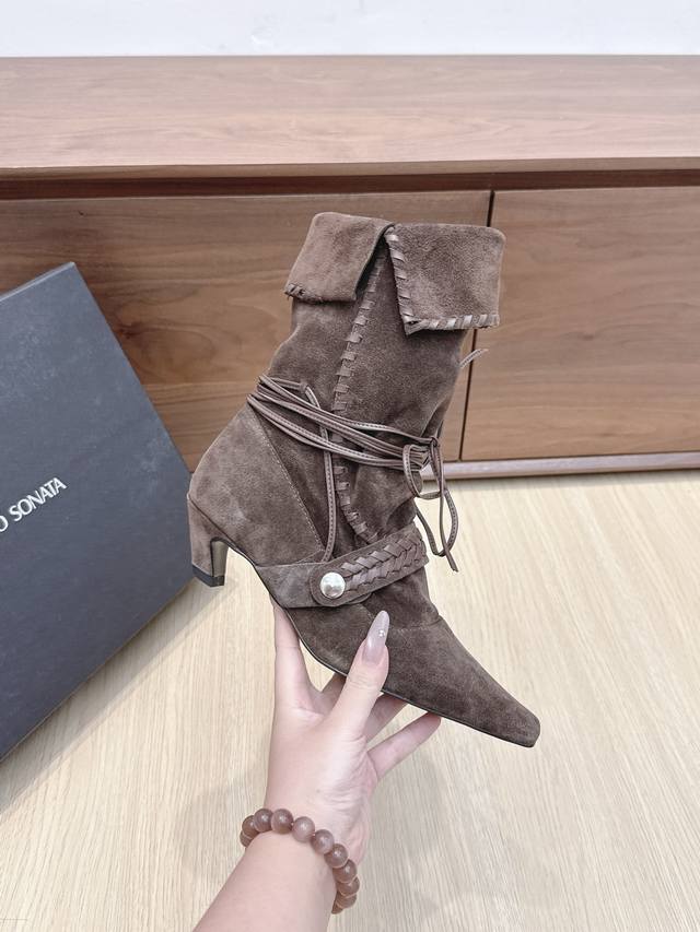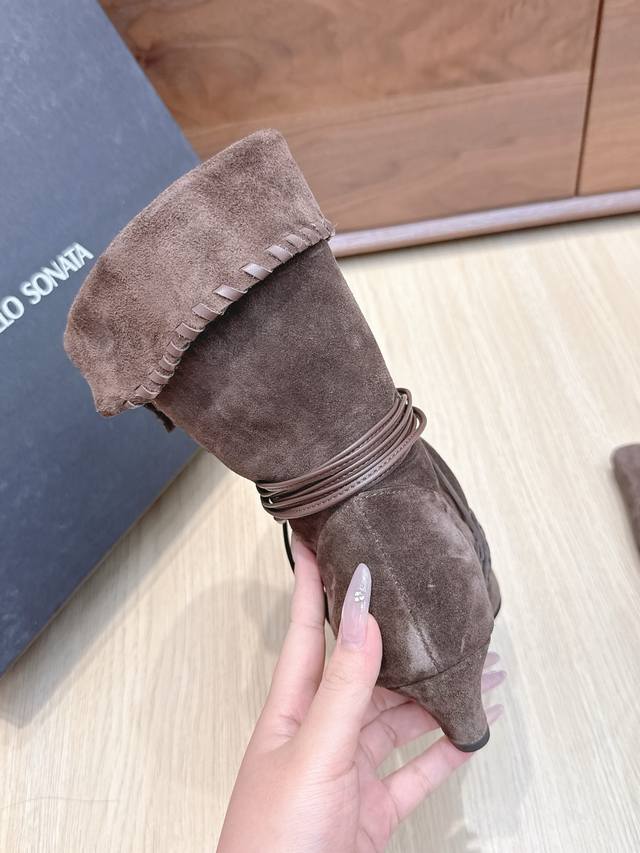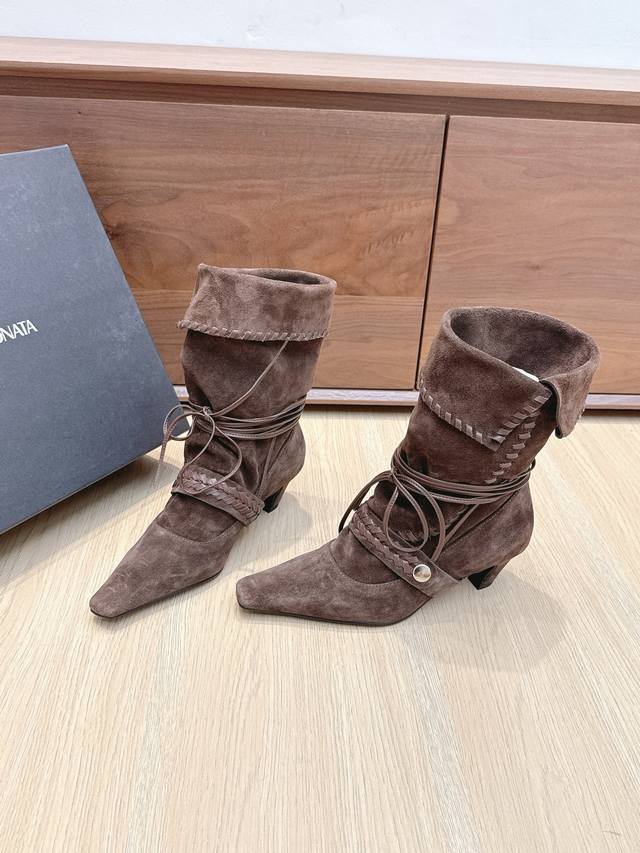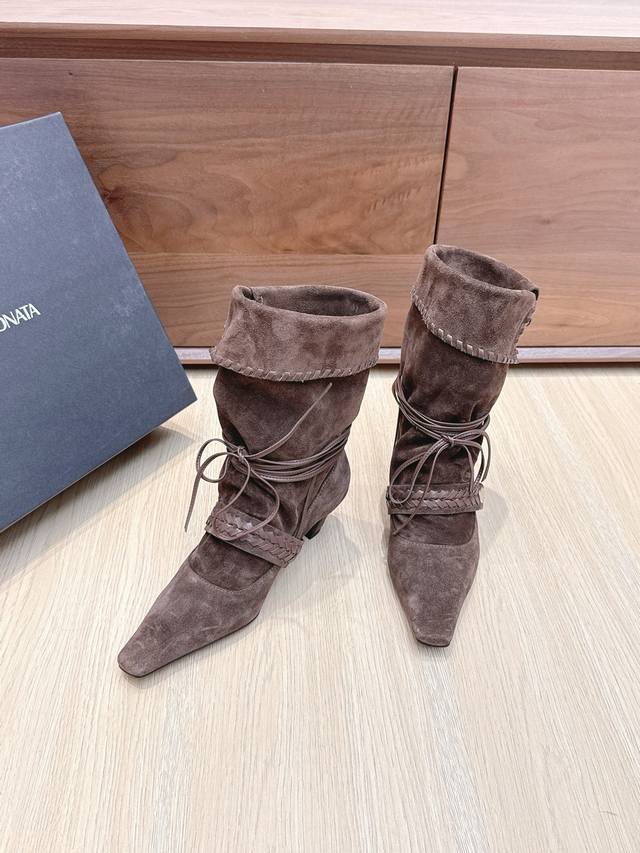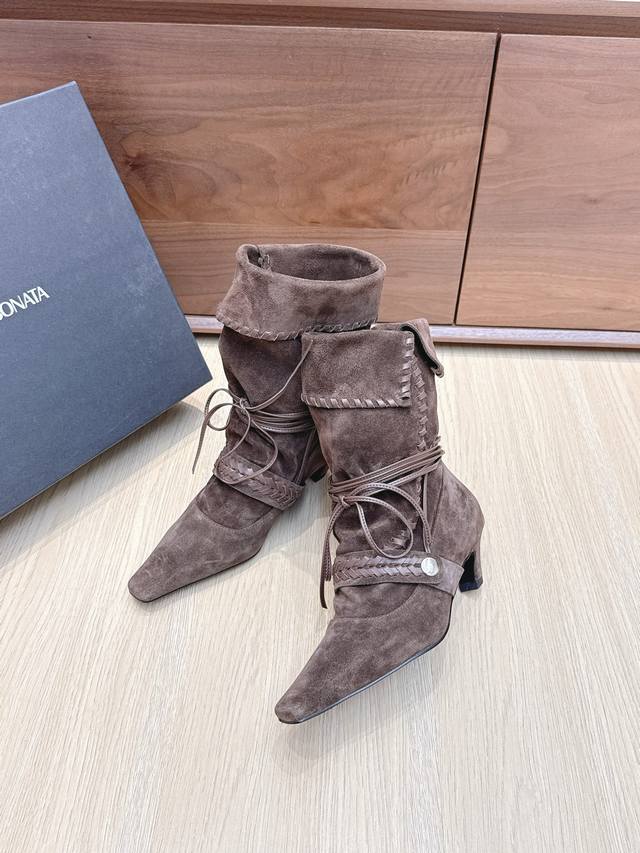 Cello Sonata 25Ss Autumn/Winter New Square Toe Pastoral Style Stacked Mid-Length Boots
