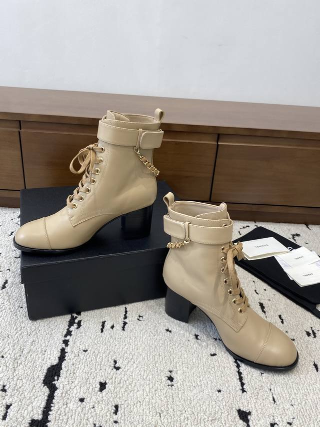 High-quality Chanel-inspired autumn/winter flat ankle boots with double C chain detailing. The upper is made of delicate and high-quality calfskin, and the original molded hardware exudes elegance and sophistication, making them a perfect match for autumn and winter. The mid-heel design elongates the figure without sacrificing comfort, allowing for a more confident and stable stride. Strong grip provides excellent support. Comparison with the original: Leather, sole, craftsmanship, and buckles are all identical. Upper material: Imported calfskin. Sole: Original Italian genuine leather outsole. Heel: Approx. 5cm. Size: 35-41. Sizes 40 and 41 are custom-made and non-refundable. Buy now!