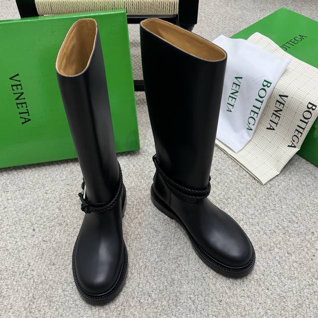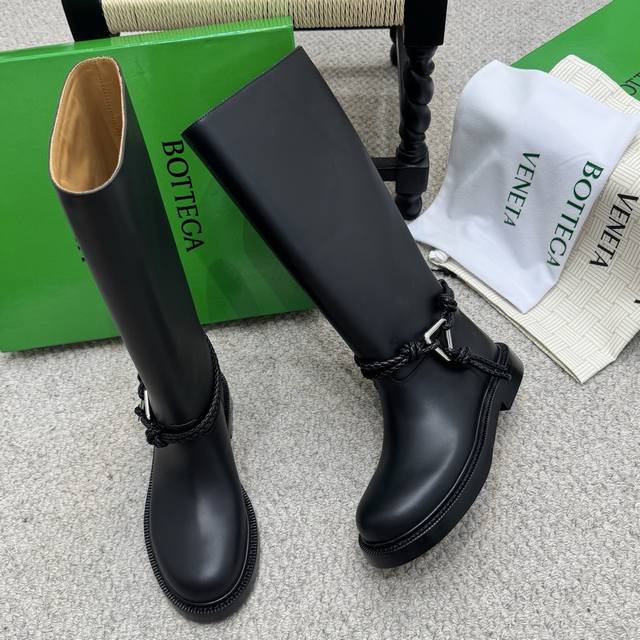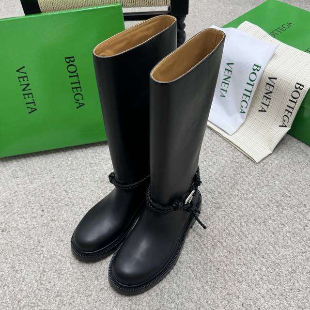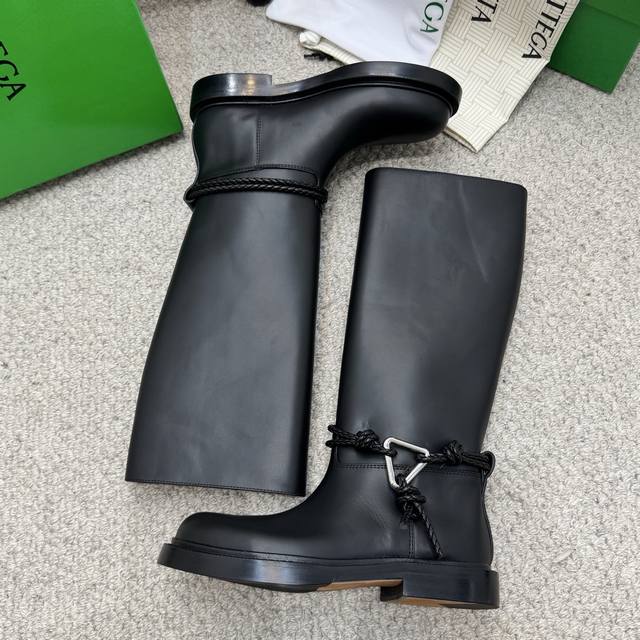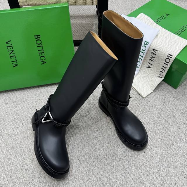 High-quality (duplicate/exclusive) Bv 2025 Fall/Winter newest, one of the hottest long boots this year! Round toe, high-top, knee-length riding boots. Custom-made Bv original leather, imported top-grain vegetable-tanned cowhide, brown water-dyed cowhide lining. Newly molded, TPU embossed U-shaped rubber outsole. Genuine leather welt. Knee-length. Comes with a full set of authentic Bv green new version. Size: 35-41.