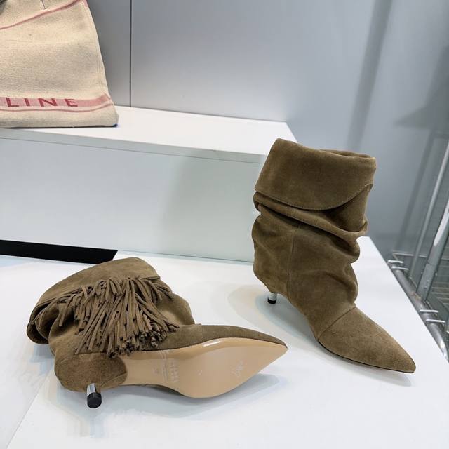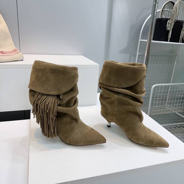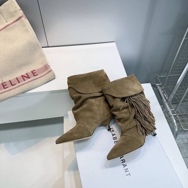 High-quality factory boots! Top-quality Isabel Marant 25Ss Fall/Winter runway-style European and American-style heeled boots with retro tassels and kitten heels! Here are boots you can wear year-round! These legendary retro boots have a simple, vintage design and are incredibly comfortable for everyday wear, perfect for everyday shopping. They'll never become a mere decoration in your shoe closet. A must-have for cool girls, the loose-fitting shaft slims your legs, making them effortlessly stylish and versatile.