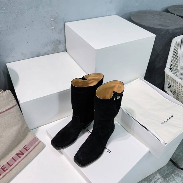 High-quality factory direct! Isabel Marant 2025Ss Fall/Winter Retro Chunky Heel Square Toe Slip-on Ankle Boots. Western-style ankle boots dominated the 24Ss runway, and cowboy boots are undoubtedly a timeless classic. The Fall/Winter collection is a masterpiece that transcends the classic. It's a must-have for almost every Instagram fashion blogger, and domestic influencers have all been seen styling them. Definitely worth buying! You won't regret it! Made with original top-grain cowhide leather, water-dyed cowhide lining, and an Italian imported three-layer thickened genuine leather outsole. Heel height: approx. 4.5cm. Sizes: 35-42, 40, 41, 42. Custom orders are non-refundable. Comes with original packaging .