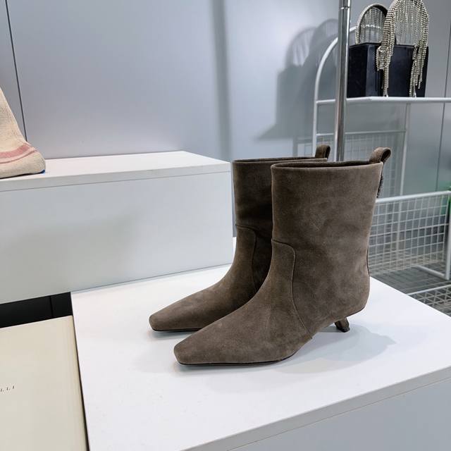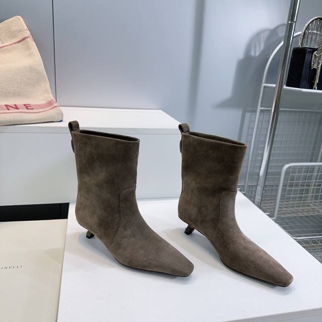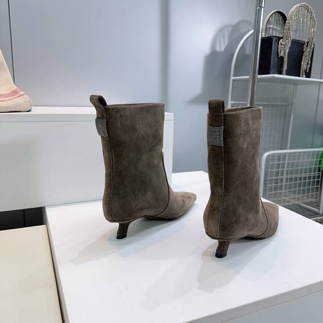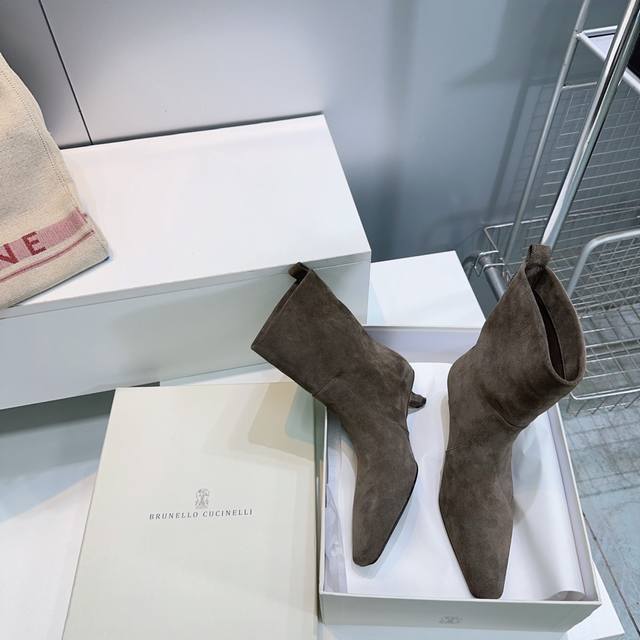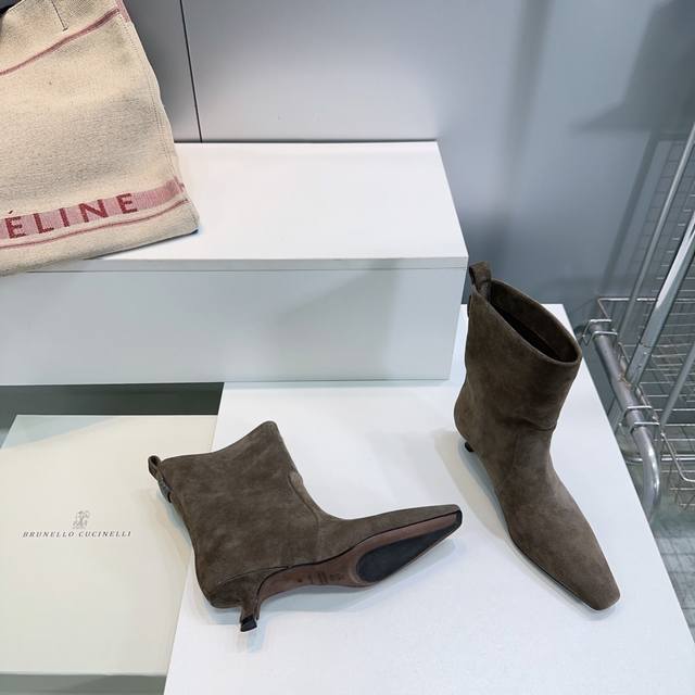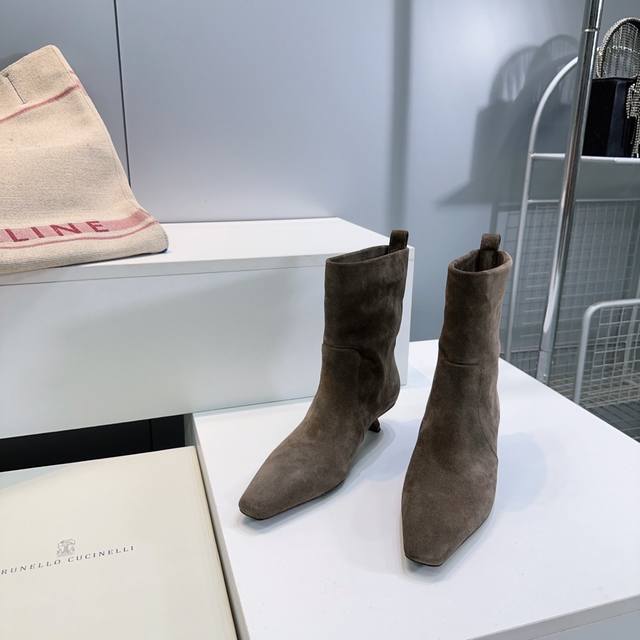 High-quality factory leather! Suede! Top quality! Brunello Cucinelli Bc 2025Ss Fall/Winter simple small square-toe kitten heel straight boots, new to the Fall/Winter collection! Highly recommended for those stunning ankle boots that accentuate height and legs. Understated and elegant, Bc's stylish yet poised style. Upper made of genuine imported calfskin suede. Lined with natural sheepskin. Original molded, non-slip rubber outsole. Sole thickness: approximately 3.5cm. Sizes: 35-40. Custom sizes are non-refundable. Comes with original packaging.