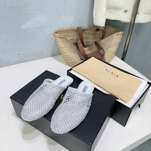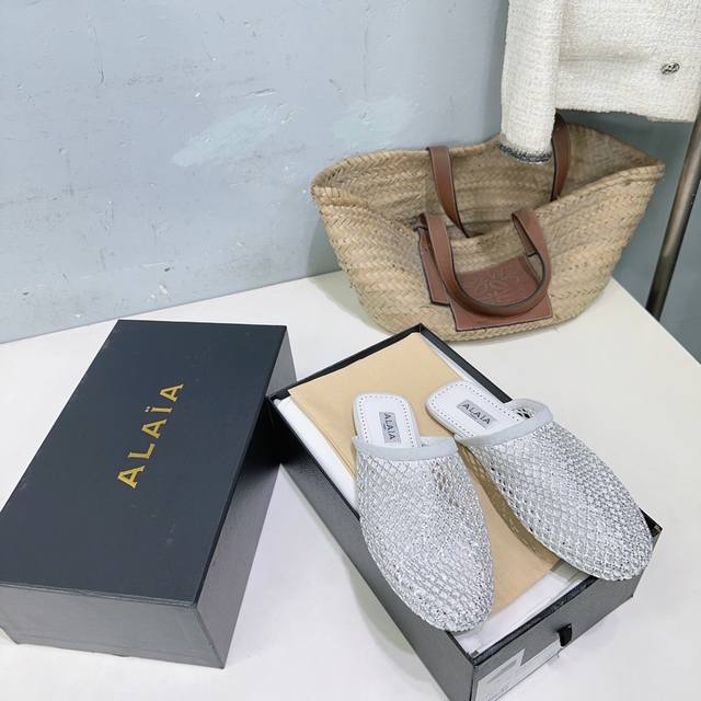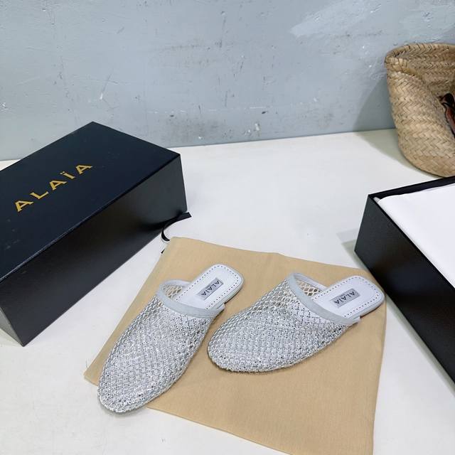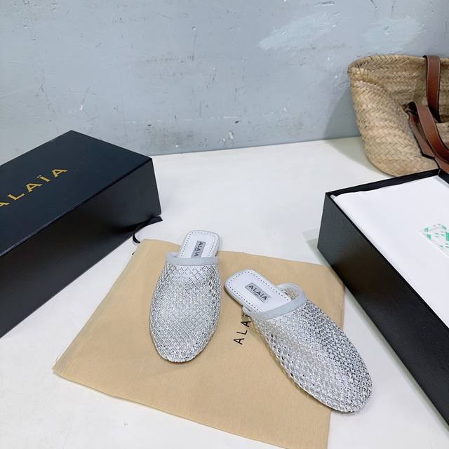 High-quality factory! Original buckle leather box +50! Niche trendy brand Alaia 2026 Spring Festival Gala new runway style flat Mary Jane mesh rhinestone half mules! Zhang Xiaohui's style! Super sweet ballet style! A very popular ballet shoe, romantic and charming, comfortable and versatile, super sparkly hot-fix rhinestone upper, exquisite, cute and beautiful, this style will be favored by fashionistas in recent years! Super sparkly and super comfortable on the feet! Ddd Imported Czech rhinestone hot-fix upper Ddd Sheepskin insole Ddd Original molded sole rubber outsole Ddd Sizes: 35-42 404142 Orders are non-refundable Ddd Comes with original packaging Ddd