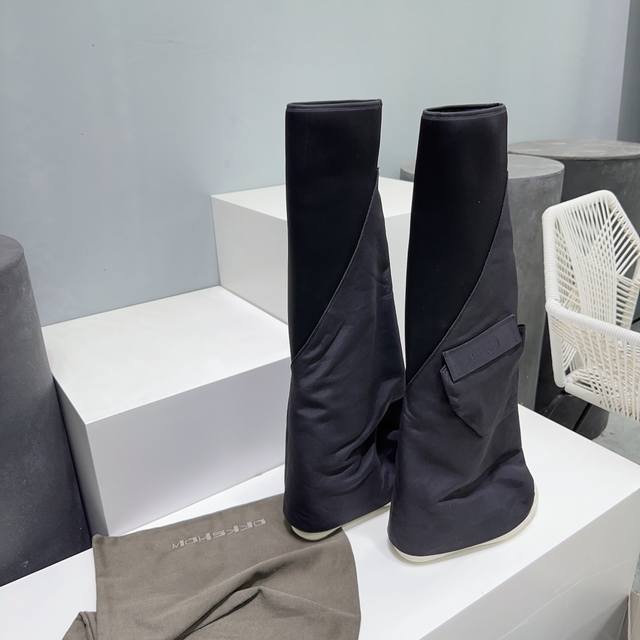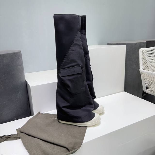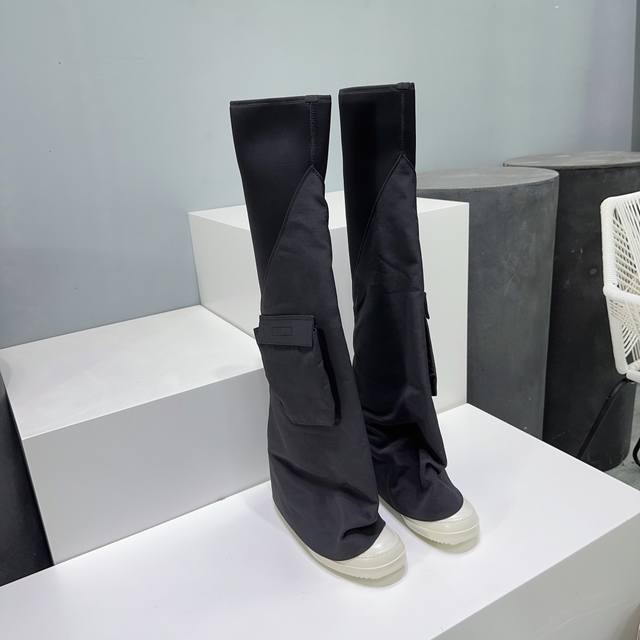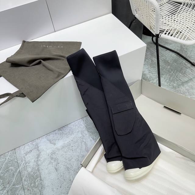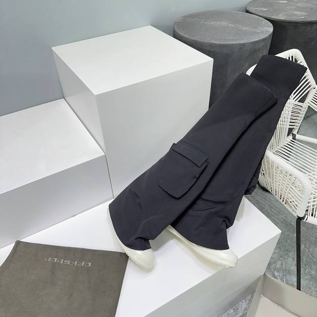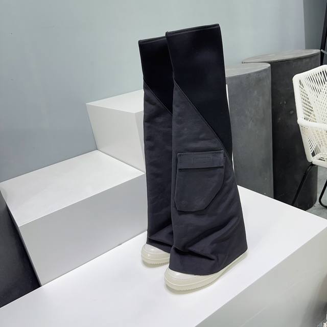 High-quality factory production! Top-tier version! Original replica! Rick Owens 25Ss Fall/Winter New Pocket Boots, Double-Leg Boots, Elephant Leg Boots, Jumpsuit Patchwork Long Boots! In short: They make you look taller and your legs look incredibly slim. Perfect for pairing with various short skirts, maximizing your hotness. A must-have for hot girls! Super beautiful on! Makes legs look incredibly slim! 1:1 original replica. Fabric: Imported double-layer elastic fiber fabric. Original mold TPU milk-scented outsole. Sizes: 35-40. Size 40 is custom-made and non-refundable. Comes with a large box packaging identical to those in department stores.
