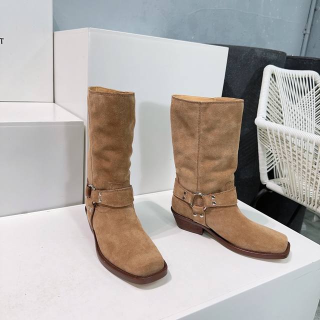 High-quality factory release! Isabel Marant 2025Ss Fall/Winter Retro Hardware Round Buckle Chunky Heel Square Toe Slip-on Boots! Western-style ankle boots dominated the 24Ss runway, and cowboy boots are undoubtedly a timeless classic. The Fall/Winter collection is a masterpiece that transcends the classics. It's a must-have for almost every Instagram fashion blogger, and domestic internet celebrities style it in various ways. Definitely worth buying! You won't regret it! Made with original top-grain cowhide leather, water-dyed cowhide lining, and Italian imported three-layer thickened genuine leather outsole. Heel height: approx. 4.5cm. Sizes: 35-42, 40, 41, 42. Custom orders are non-refundable. Comes with original packaging.