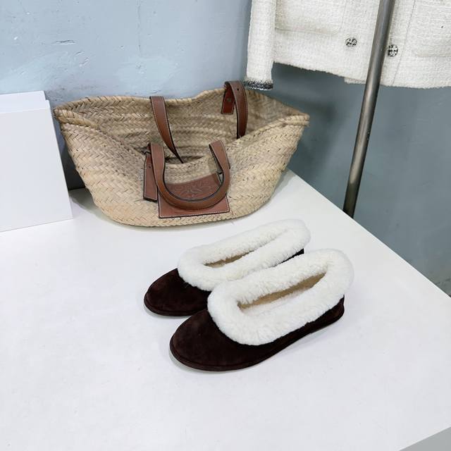 High-quality factory release! Niche trendy brand The Row 25Ss Autumn/Winter New Arrival Lambswool Mary Jane Flat Shoes, Warm and Furry! DDD The upper is made of pure suede, stylish yet gentle! The insole is made of soft lambswool, making the shoes incredibly soft and comfortable! A completely casual style, the shoes have a loose fit and are very versatile! Very friendly to all foot shapes! A must-have item for autumn and winter outfits, warm, comfortable, and easy to match! DDD Upper made of cow suede DDD Lambswool insole DDD Original mold rubber outsole DDD Sizes: 35-41 4041 Custom orders are non-refundable DDD Comes with original packaging DDD