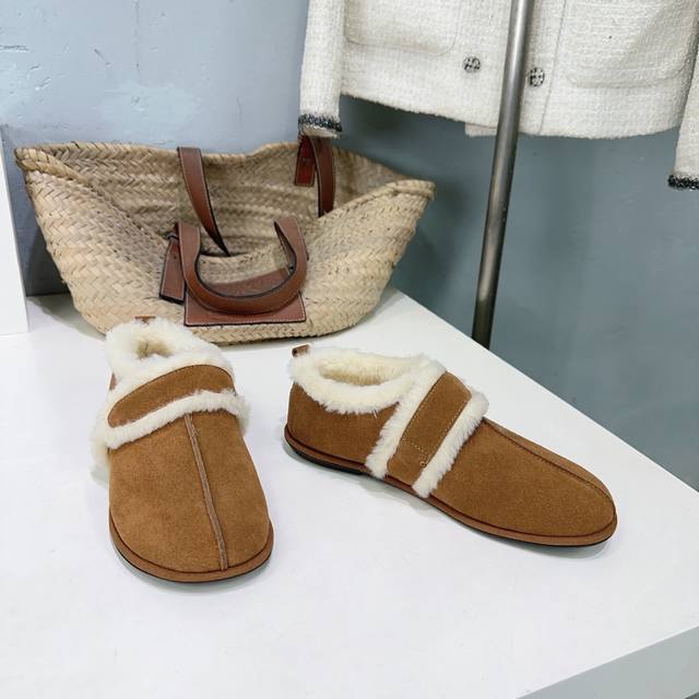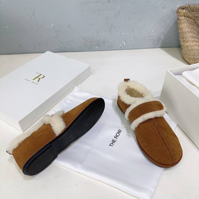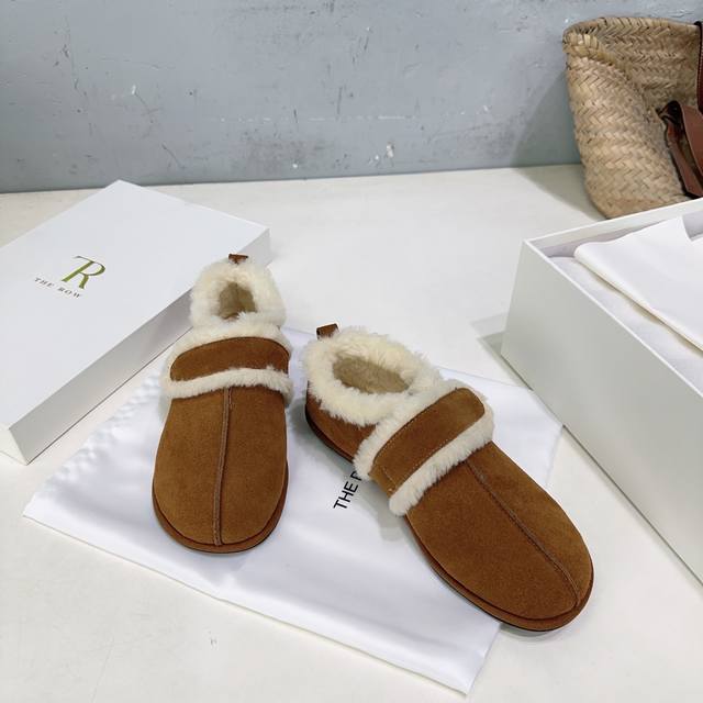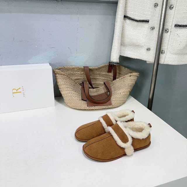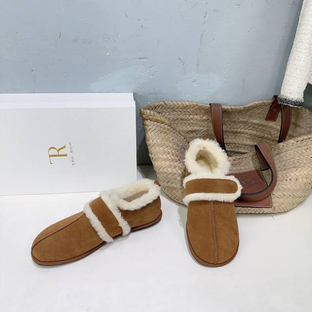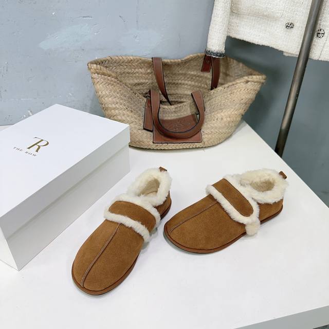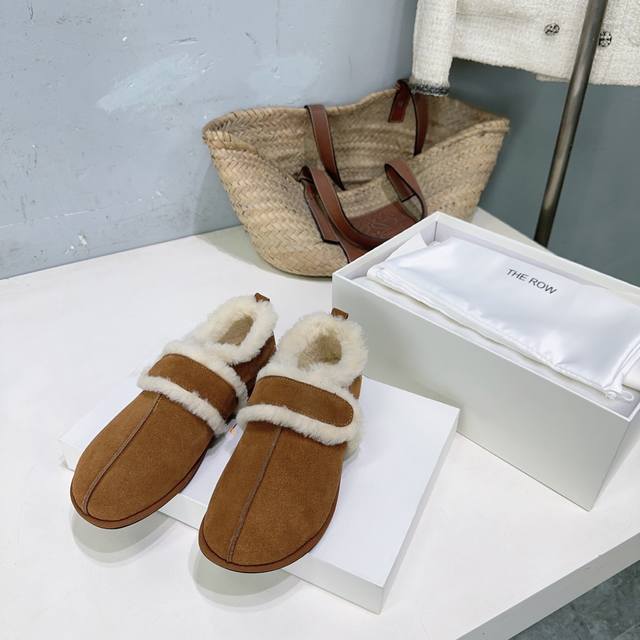 High-quality factory release! Niche trendy brand The Row 25Ss Autumn/Winter new warm lamb wool Velcro bag shoes! DDD Who can resist such a versatile and warm pair of snow boots! I have to share my favorite wool shoes for autumn with everyone! DDD They go very well with trench coats, jeans, trousers, skirts, etc.! The independently molded last supports the shoe shape perfectly. The shoes are not stiff or bent, and the heel won't slip off. You don't have to worry about them being too soft or lacking support. DDD The Velcro strap on the side of the shoe shows the curve perfectly, so it suits all foot shapes! DDD The upper is made of cow suede. DDD Wool insole. DDD Original molded rubber outsole. DDD Sizes: 35-41. Orders of 40 and 41 are non-refundable and non- exchangeable . DDD Comes with original packaging. DDD