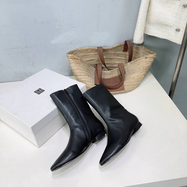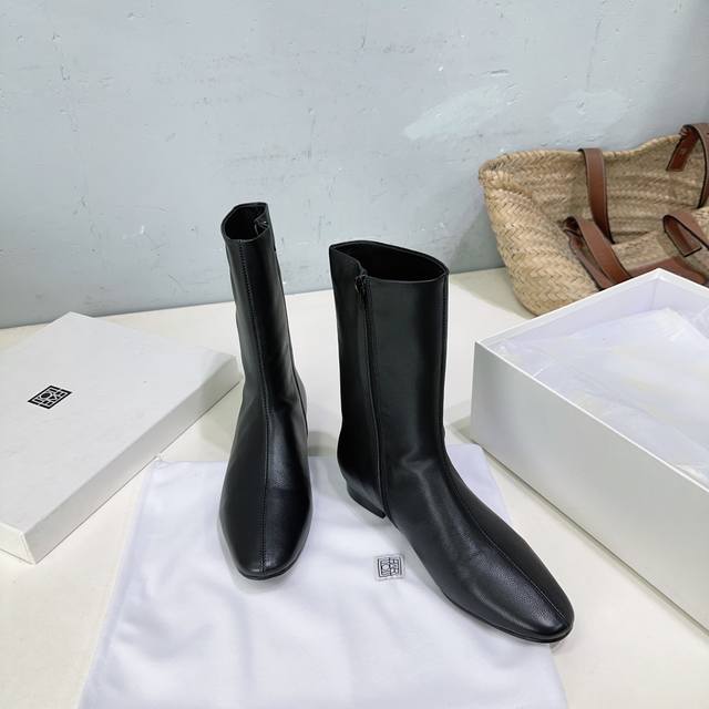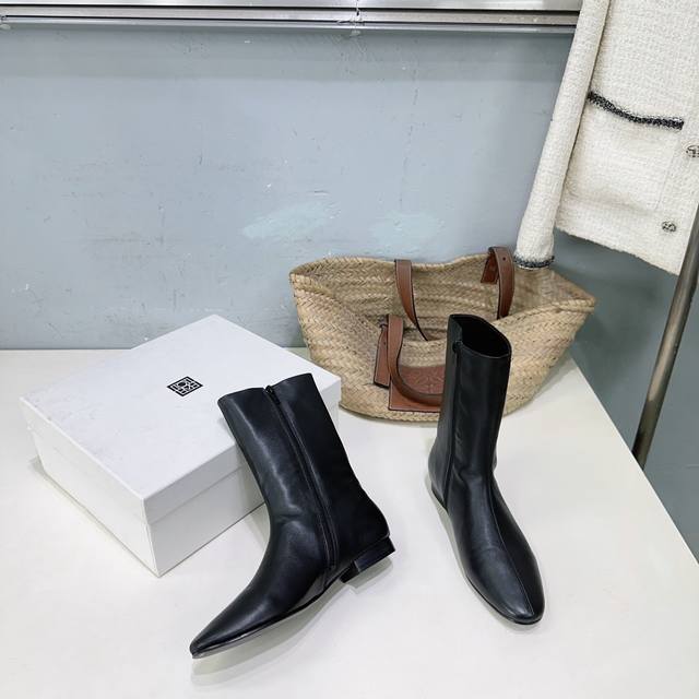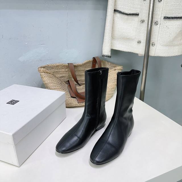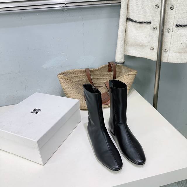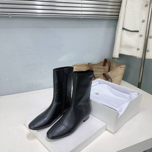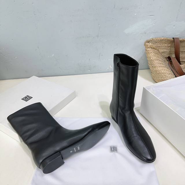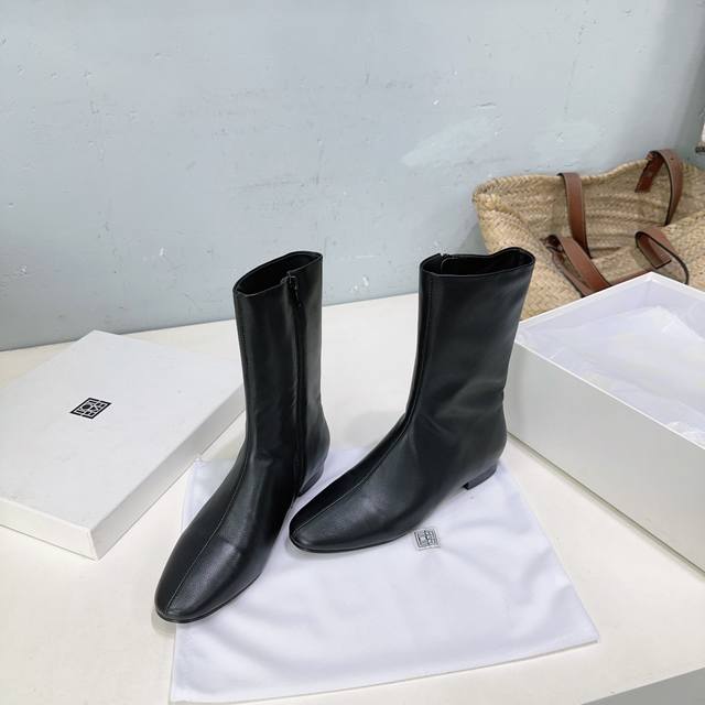 High-quality factory release! Niche trendy brand Toteme 25Ss Autumn/Winter new simple round-toe flat ankle boots with side zipper! Super eye-catching, sweet and edgy, minimalist style is all about Toteme. Simple yet anything but ordinary, effortlessly elegant French style. Upper: pebbled calfskin. Lining: sheepskin. Outsole: Italian imported genuine leather. Sizes: 35-41. Orders of 40 and 41 are non-refundable and non-exchangeable. Comes with original packaging.