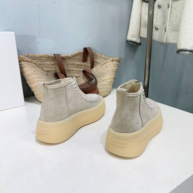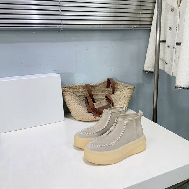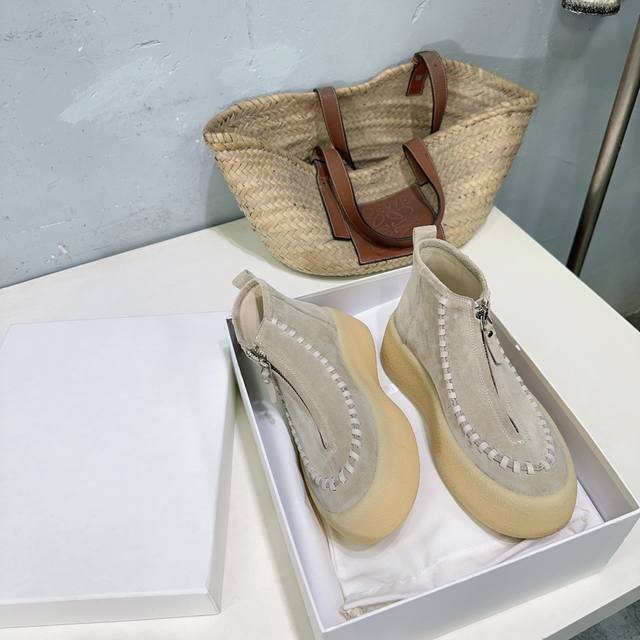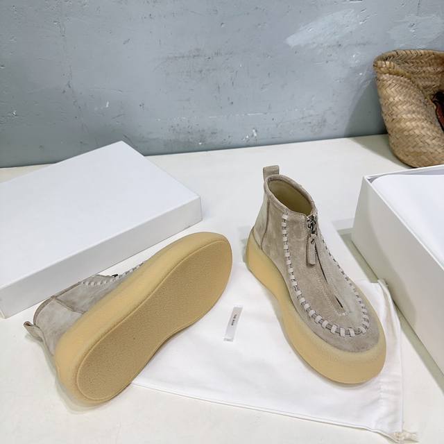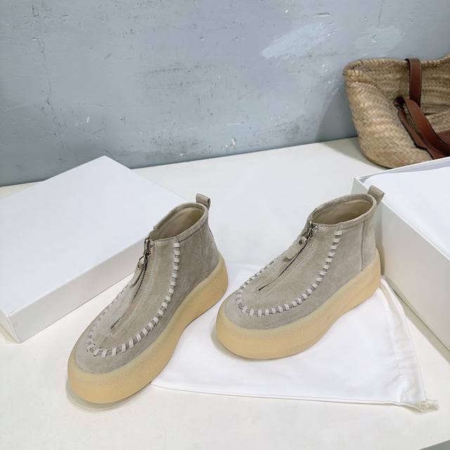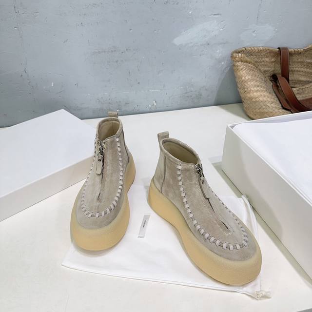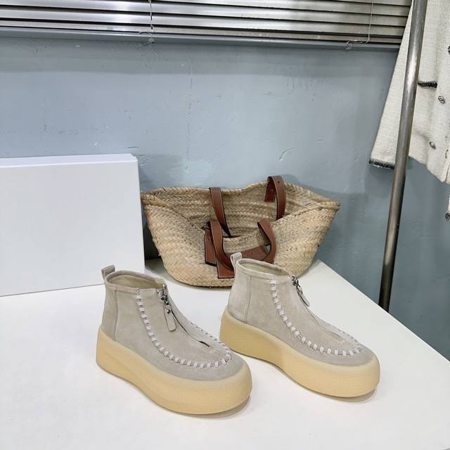 High-quality factory release! The Row 2025 Autumn/Winter platform ankle boots with front zipper, a 1:1 replica of the original last! Featured by numerous celebrities and bloggers, the front zipper design is classic and timeless! Simple and stylish, super easy to put on and take off, and even women with high insteps don't need to worry