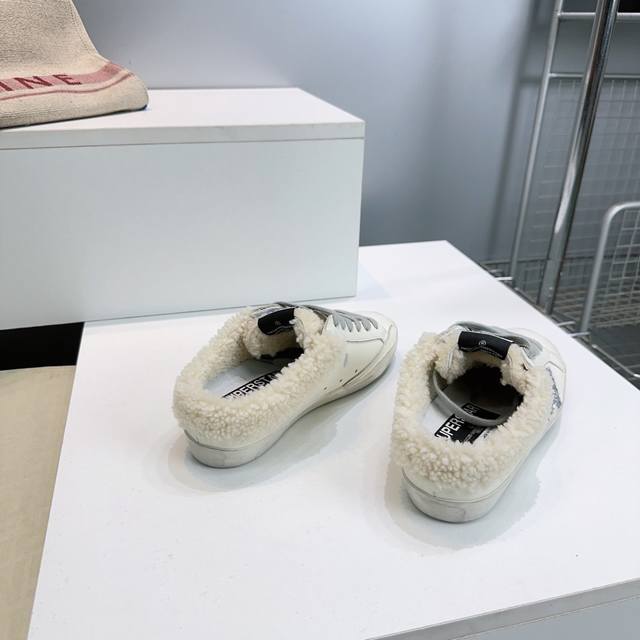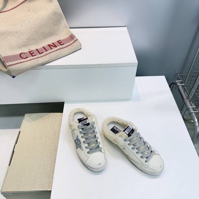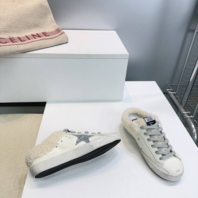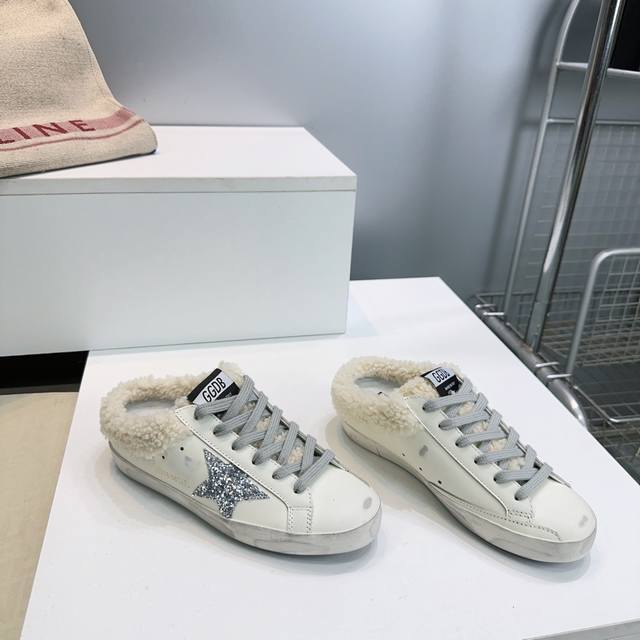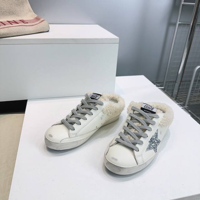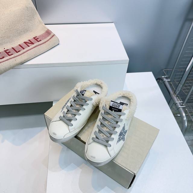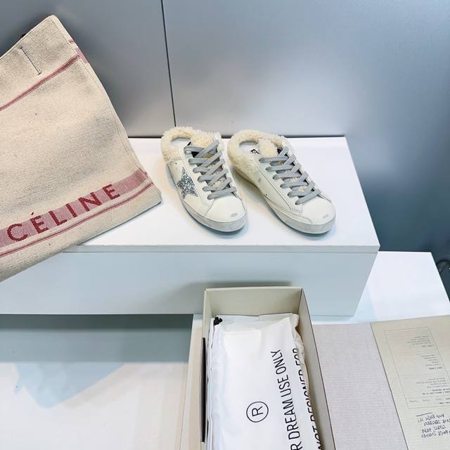 High-quality factory release! Top-quality Ggdb distressed sneakers with wool lining, star-studded lamb's wool, half-length slippers, white sneakers! Breaking traditional aesthetics, distressed sneakers have succeeded! Celebrity off-duty style examples show how versatile they are! Original custom calfskin upper, imported Australian lamb's wool lining, sheepskin insole, exclusive molded latex insole with 3cm height increase, original molded rubber outsole . Sizes: 35-40. Size 40 is custom-made and non-refundable. Comes with original packaging.