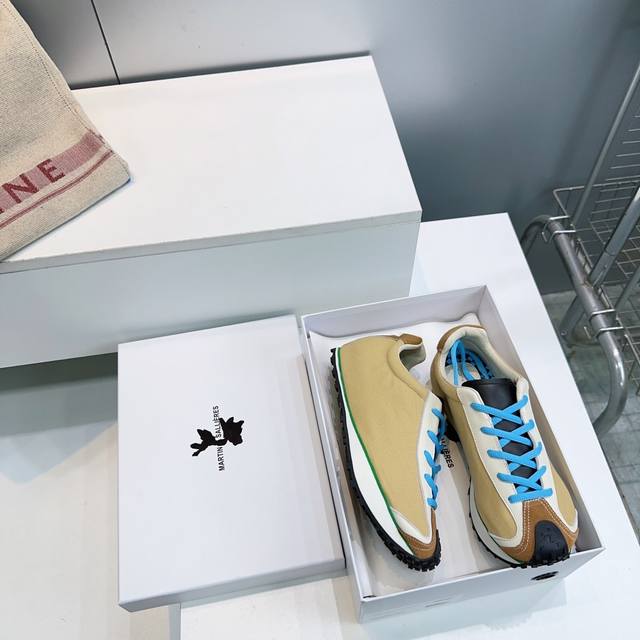 High-quality factory release! Top-quality Martin Sallieres Spring/Summer 2026 new color-blocked trendy platform canvas casual sneakers! Combining outdoor functionality with urban style, these shoes feature a signature streamlined design with a large breathable area, offering both visual appeal and practicality. The distinctive lacing system adds a modern, functional element to the overall look. Suitable for everyday walking and light exercise, the durable and breathable upper material meets various wearing needs. The upper is made of imported high-density canvas and calfskin. Original molded foam combination outsole for lightweight comfort. Sole thickness approximately 4.5cm. Sizes: 35-41. Sizes 40 and 41 are non-refundable and non-exchangeable. Comes with original packaging.