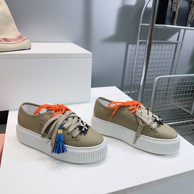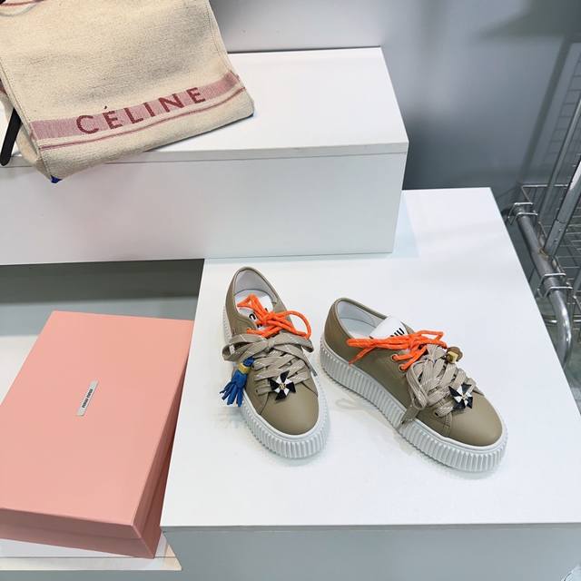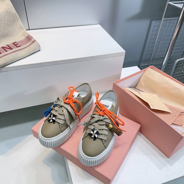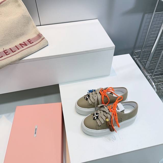 High-quality factory release! Top-quality Miu Miu 2025 Fall/Winter flagship store latest platform sneakers with colorful laces, casual white shoes, exuding a high-end feel! A must-have for bloggers both domestically and internationally, retro yet fashionable, and looks amazing on! Official website featured style
