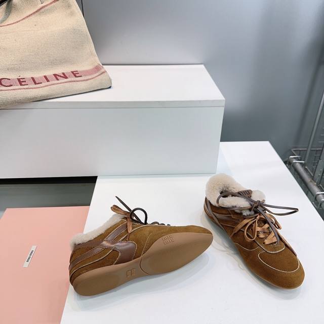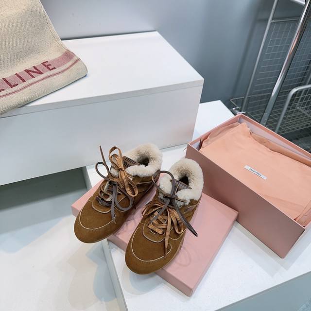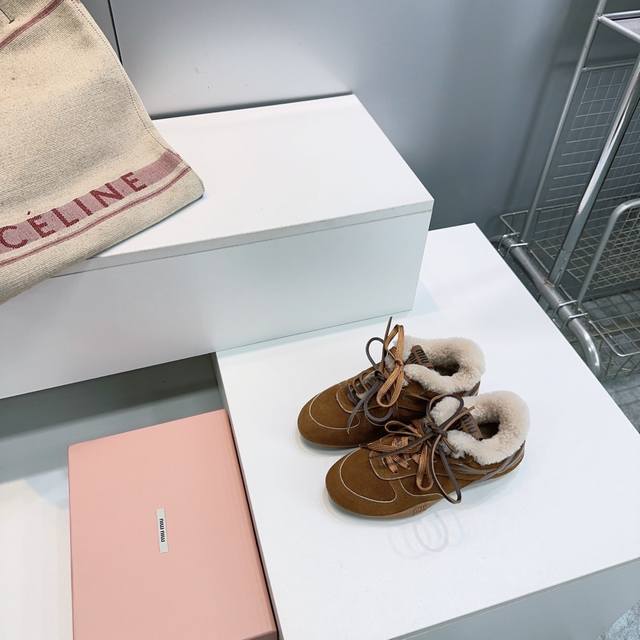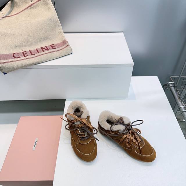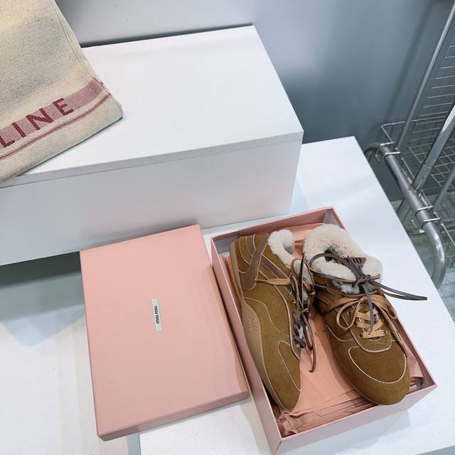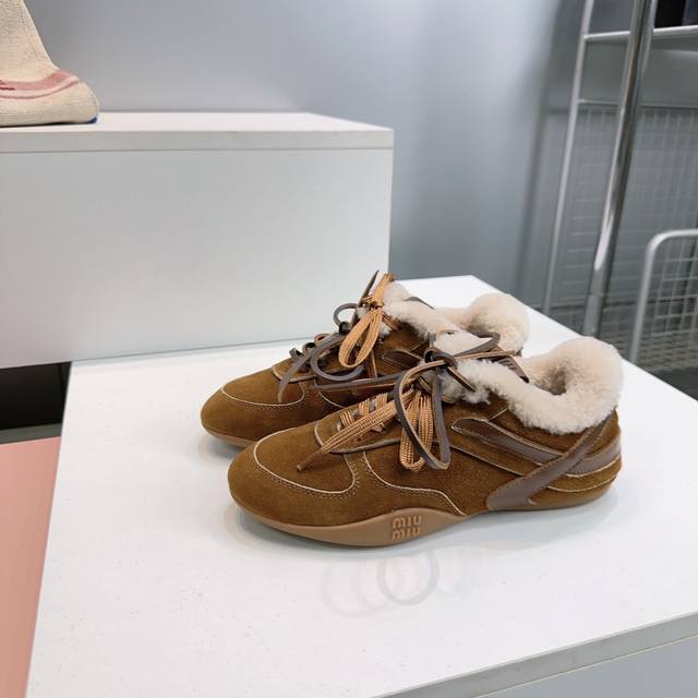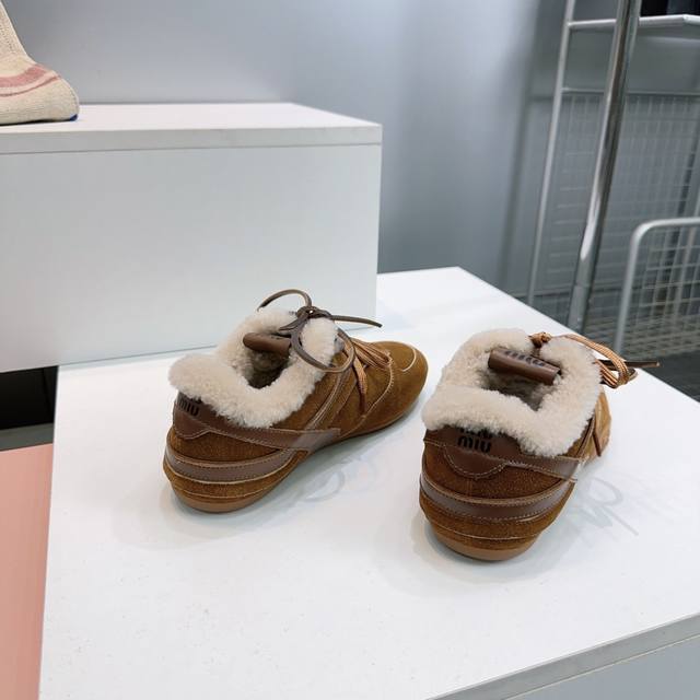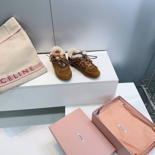 High-quality factory release! Top-quality Miu Miu 25Ss Autumn/Winter New Warm Lamb Wool Casual Shoes Lace-up Agand's Training Shoes Furry Shoes! Experience the new warm wool and cow suede casual sneakers of a chaebol heiress! A fluffy retro casual shoe that you'll fall in love with at first sight! Super cute and adorable! Instantly captures the autumn/winter vibe. The lamb wool is super warm, and the style is both beautiful and practical! Miu really understands women's hearts!!! Sweet and gentle girls, hurry up and grab these~ A youthful and elegant must-have! Instantly elongates your figure and makes your legs look slimmer! The upper is made of original imported cow suede, with the same texture as the original! The insole is made of imported top-grade lamb wool, soft and delicate to the touch! Comfortable and warm! DDD and gray calf socks really go well together! DDD Original molded design with rubber sole DDD Sizes: 35-40 Size 40 is custom-made and non-refundable DDD Comes with original packaging DDD