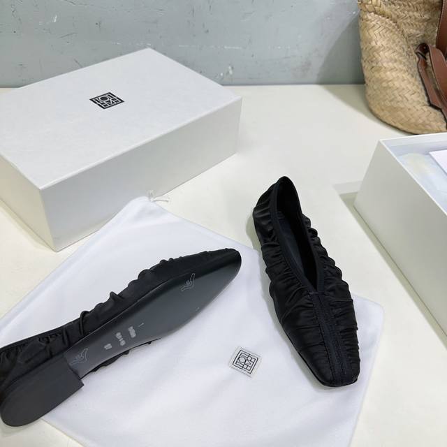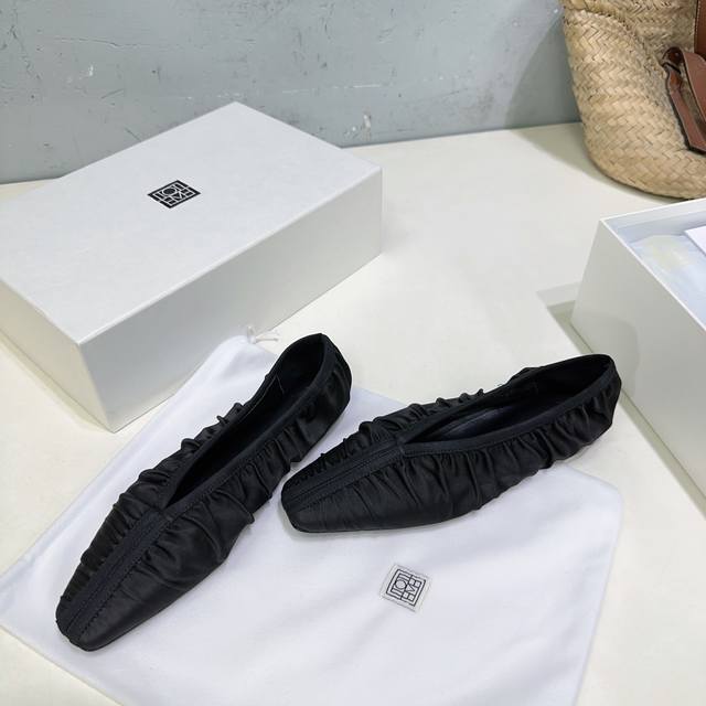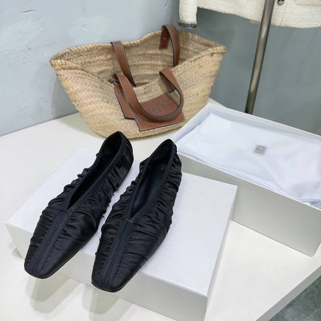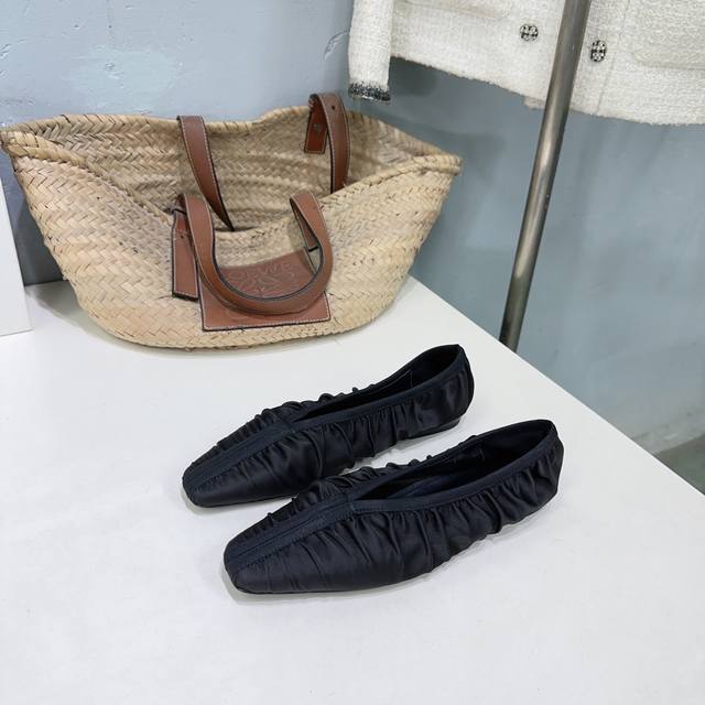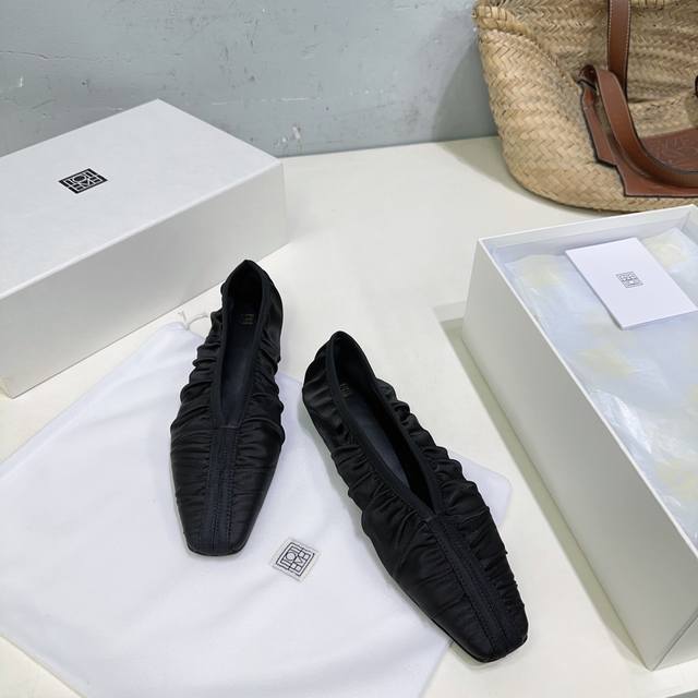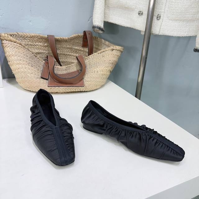 High-quality factory release! Toteme, a niche trendy brand, presents a perfect blend of French retro style in these wrinkled flat loafers/grandma shoes for Spring/Summer 2026. Whether for casual vacations or elegant sophistication, they are versatile and easy to match, more so than you might imagine. They truly embody retro, modern, and comfortable. The upper is made of original lambskin and original satin fabric. The insole is made of lambskin. The outsole is made of imported Italian genuine leather. Sizes: 35-41, 40, 41. Custom orders are non-refundable and non-exchangeable. Comes with original packaging.