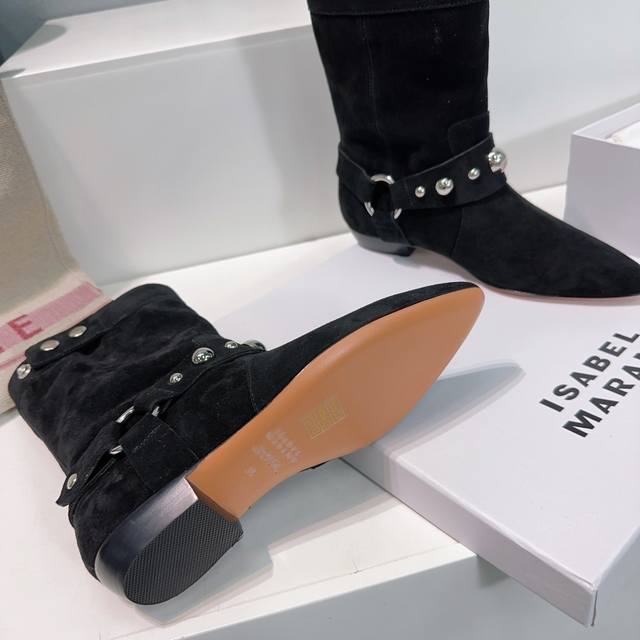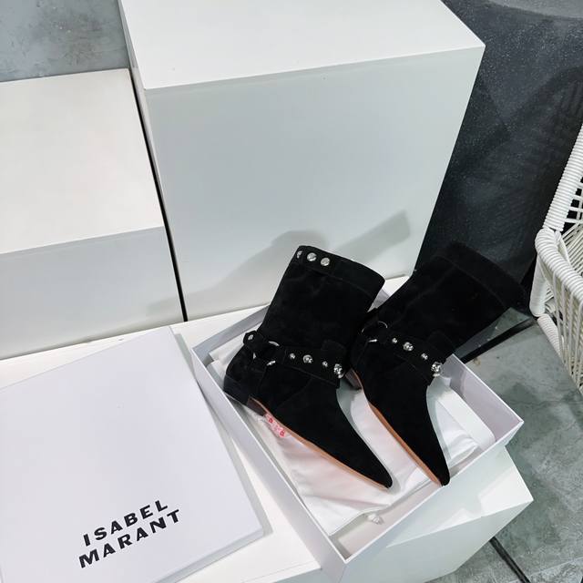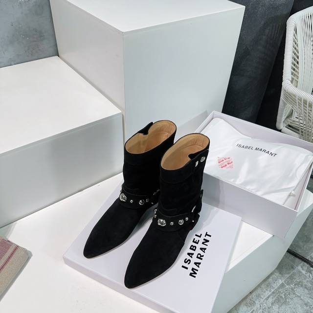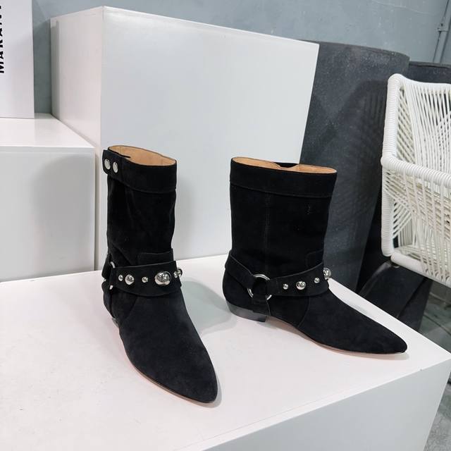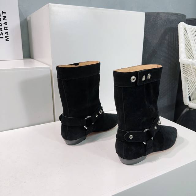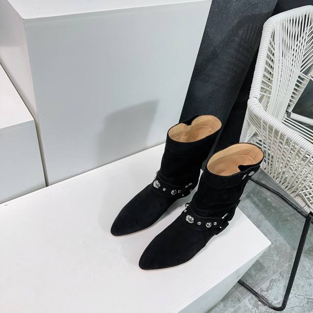 High-quality factory! Top quality Isabel Marant 25Ss Autumn/Winter Simple Pointed Toe Slip-on Ankle Boots with Hardware Buckle! A classic women's patchwork mid-calf boot with a strong family style. A standard European and American style, representing a brand that uses minimalism to describe a pair of boots. An essential simple boot~ interpreting the taste of versatility! The gray and military green are very high-end colors. The upper is made of high-gloss cow suede. The boot body is super soft and comfortable. The ankle height is just right. It can be worn in all seasons. It looks handsome and neat on the foot. It plays the lazy style to the extreme. It is a fashion item for cool girls.