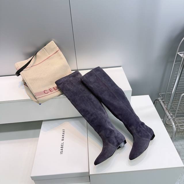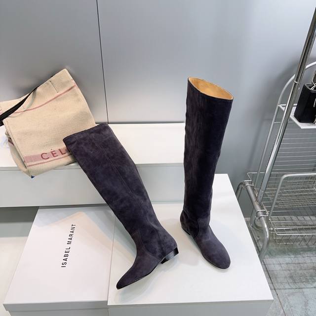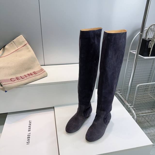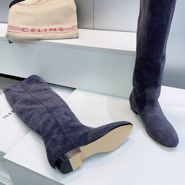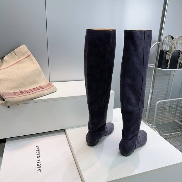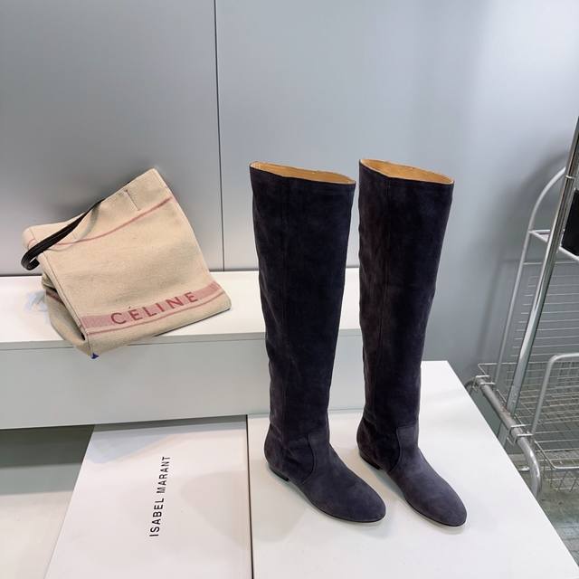 High-quality factory! Top quality Isabel Marant 25Ss Autumn/Winter Simple Smooth Cowhide Suede Round Toe Flat Heel Long Boots! A classic women's patchwork long boot with a strong family style. A standard European and American style, representing a brand that uses minimalism to describe a pair of boots. An essential simple boot~ interpreting the taste of versatility! The gray and military green are very high-end colors. The upper is high-gloss cow suede, the boot body is super soft and comfortable, the ankle height is just right, suitable for all seasons, stylish and neat on the feet, the ultimate in lazy style, a fashion item for cool girls. DDD The upper is made of original imported cow suede DDD The insole is water-dyed cowhide DDD The outsole is made of Italian imported original color genuine leather DDD Sizes: 35-41 40 41 Custom orders are non-refundable DDD Comes with original packaging DDD