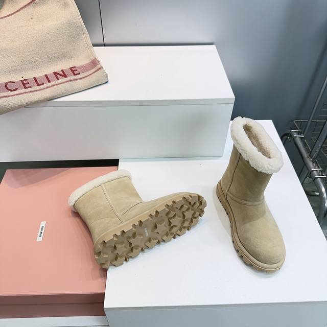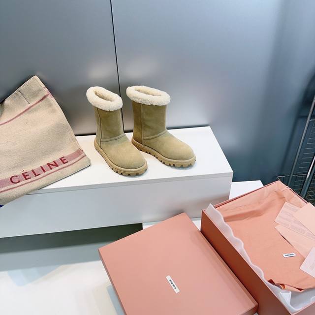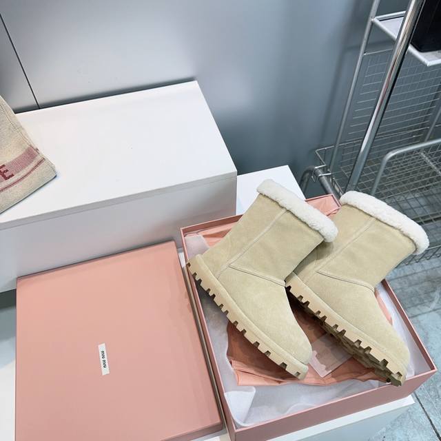 High-quality factory! Top quality Miu Miu 25Ss Autumn/Winter Newest Wool Warm Snow Boots Round Toe Simple Ankle Boots! Absolutely adorable! DDD Miu's winter warm snow boots certainly don't disappoint. These cute snow boots are instantly captivating, warm and comfortable! The all-wool lining is absolutely amazing. You need a pair to quickly cool down! DDD Imported suede cowhide upper DDD Imported lamb wool lining DDD Original mold rubber outsole DDD Sizes: 35-40 Size 40 is custom-made and non-refundable DDD Comes with original packaging DDD