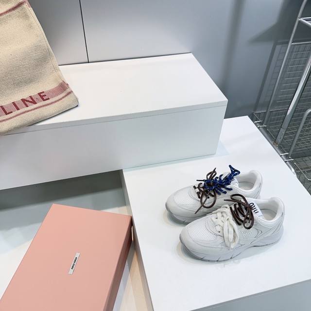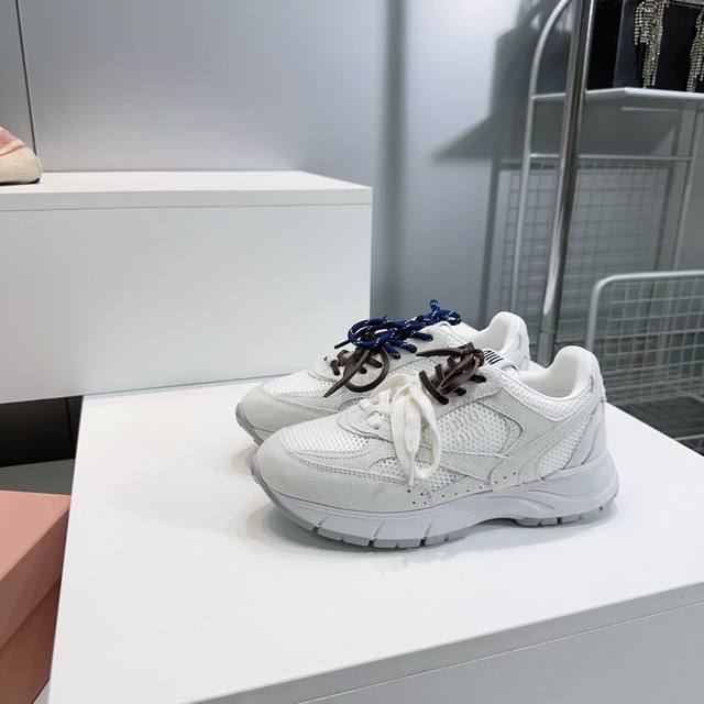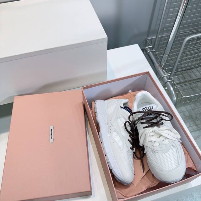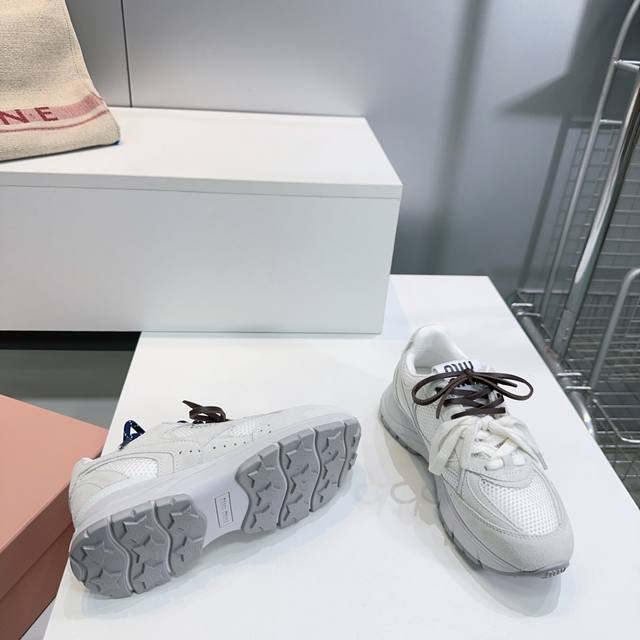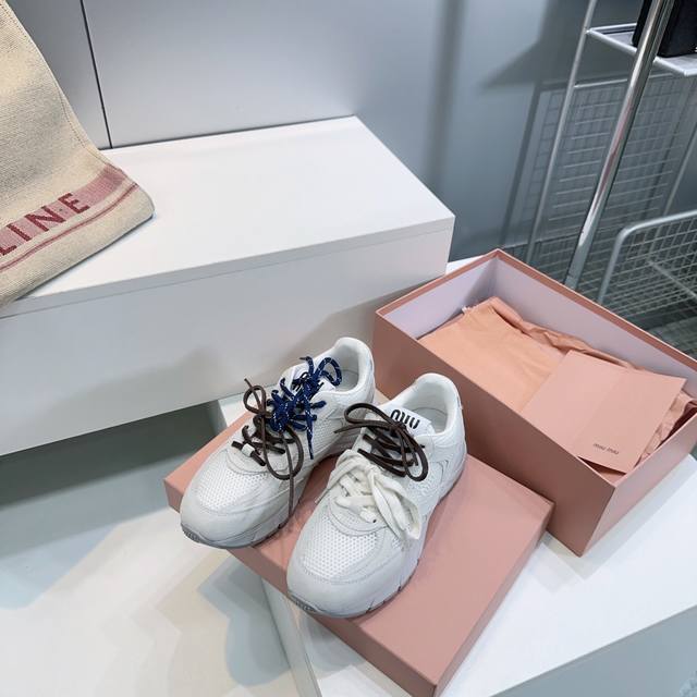 High-quality factory! Top quality Miu Miu Spring/Summer 2025 new retro distressed chunky sneakers! A must-have for any fashionista! Distressed and stylish, simple yet sophisticated, easy to match, and very comfortable. A must-have of the year! The latest runway style chunky sneakers, a favorite among domestic and international bloggers! A must-have on Xiaohongshu (Little Red Book), retro yet fashionable, stunning on foot! Simple athletic design, highly recognizable tongue, creating a relaxed and sweet casual style. Full of presence, easy to match. Mainstream double lace design for a fashionable look. Upper made of original imported distressed calfskin breathable mesh. Insole with breathable mesh. Original molded two-tone rubber outsole. Sizes: 35-40. Size 40 is custom-made and non-refundable. Comes with original packaging.