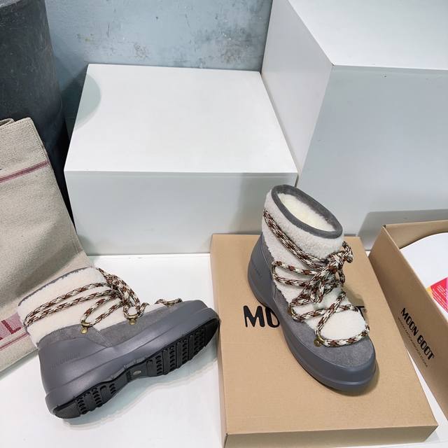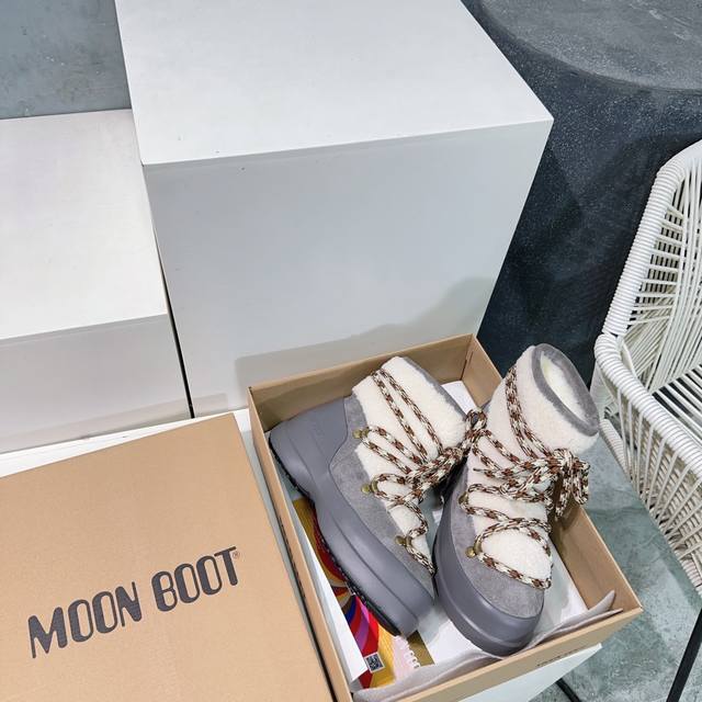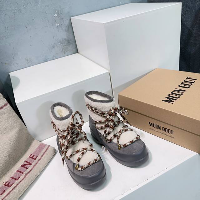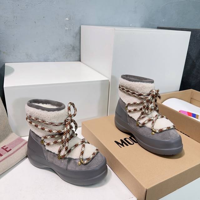 High-quality factory! Top quality Moon Boot 2025Ss Autumn/Winter New Thick-soled Round Toe Chubby Lace-up Snow Boots Series