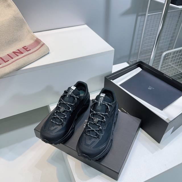 shoe uses sharp mountain ridge lines to reconstruct the design language, with the midsole outline resembling the undulating mountains. The black, gray, and silver color scheme of the shoe body evokes a sense of solitude amidst the surging sand and gravel. The