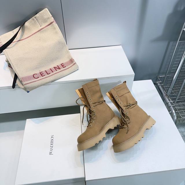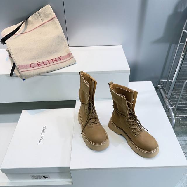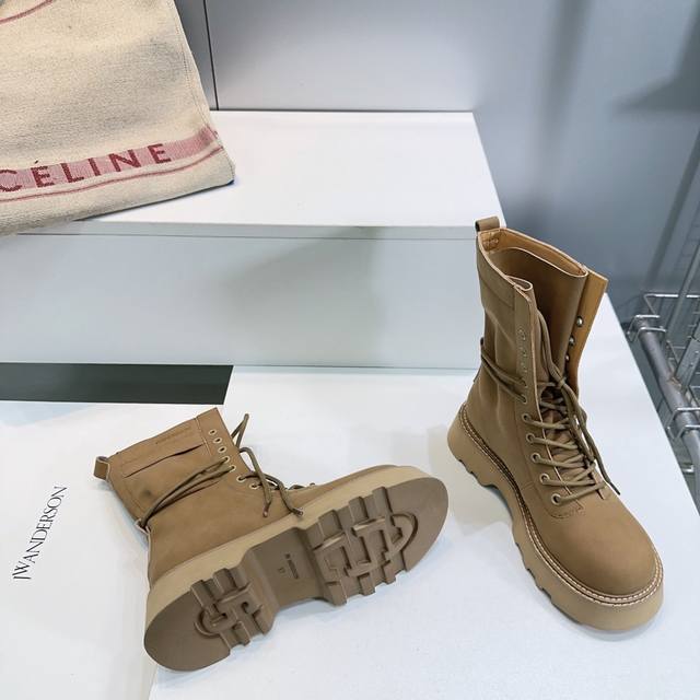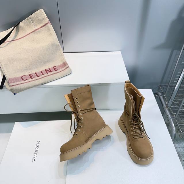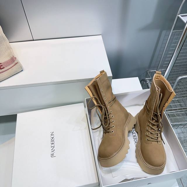 High-quality factory! Top-quality Jw Anderson 25SS Autumn/Winter trendy new platform Martin boots! A unique yet understated design from a niche British brand, unlikely to be seen on others. Each shoe is a trendsetter. Individuality is a key hallmark of JW, infused with modern genes, exploring diverse personalities. Featuring two-tone designs and padded details, they are highly recognizable. The ultra-thin high heel adds a playful touch, showcasing inspiration on your feet. Absolutely a top choice for autumn/winter outfits! The upper is made of original imported suede cowhide, the insole is made of water-dyed cowhide, and the sole is made of Italian molded, bouncy foam. Sizes: 35-41, 40, 41. Custom orders are non-refundable and non-exchangeable. Comes with original packaging.