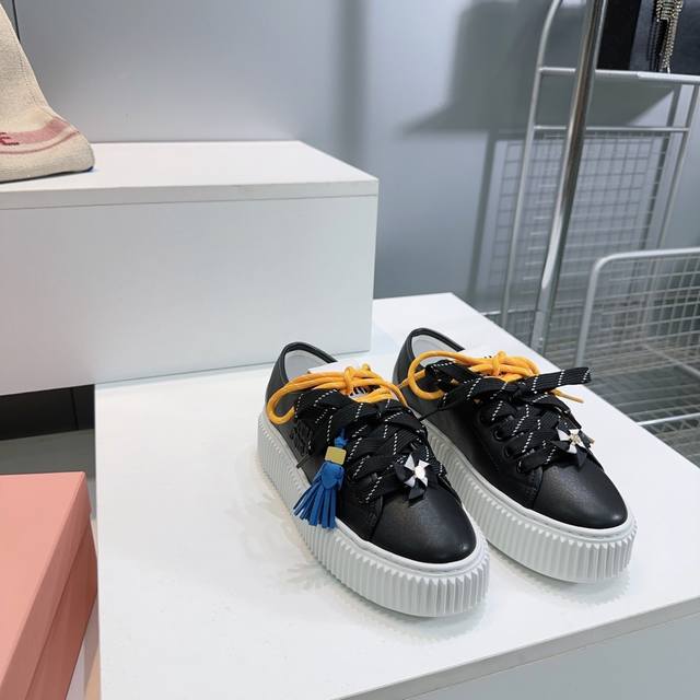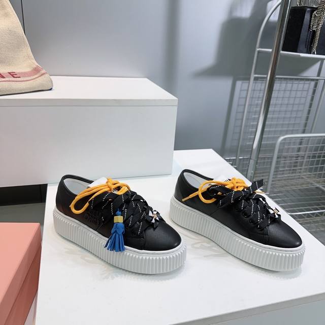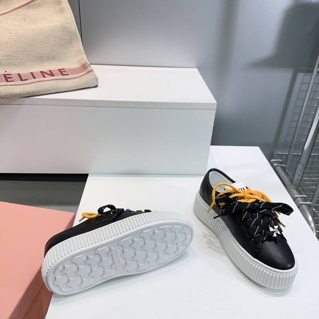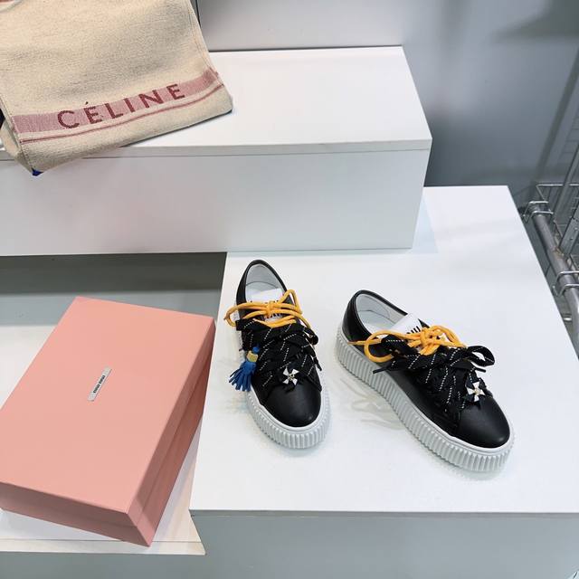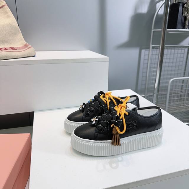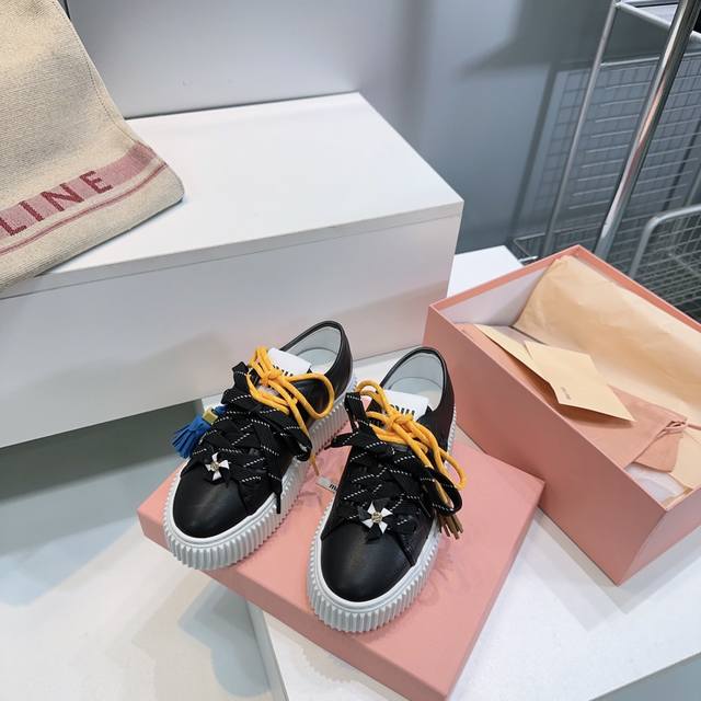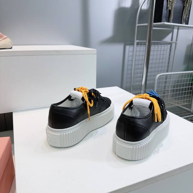High-quality factory! Top-quality Miu Miu 2025 Fall/Winter flagship store latest platform sneakers with colorful laces, casual white shoes. Super high-end feel! A must-have for bloggers both domestically and internationally, retro yet fashionable, and looks amazing on! Official website featured style