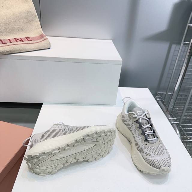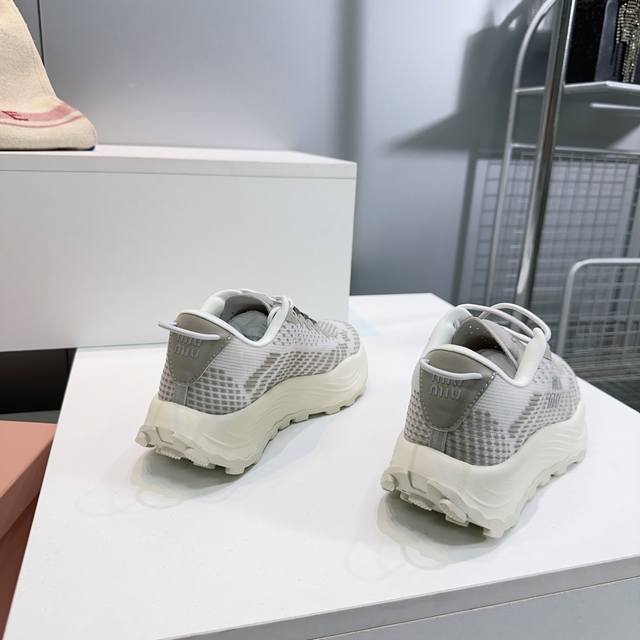High-quality factory! Top-quality Miu Miu Spring/Summer 2025 new American-style platform chunky sneakers, sneakers, fashion casual shoes! A must-have for this hottest sneaker collection! Stylish, sophisticated, easy to match, and incredibly comfortable. A must-have of the year! The latest runway style chunky sneakers, a favorite among domestic and international bloggers, recommended on Xiaohongshu (Little Red Book). Retro yet fashionable, these chunky sneakers look amazing on! The distinctive tongue adds a touch of casual sweetness. They exude confidence and are easy to style! The 6cm outsole height is a true height booster! The upper uses original custom woven fabric, the inner lining is breathable mesh, and the original molded foam outsole is lightweight and comfortable. Sizes: 35-40. Sizes 40 and up are non-refundable. Comes with original packaging.
