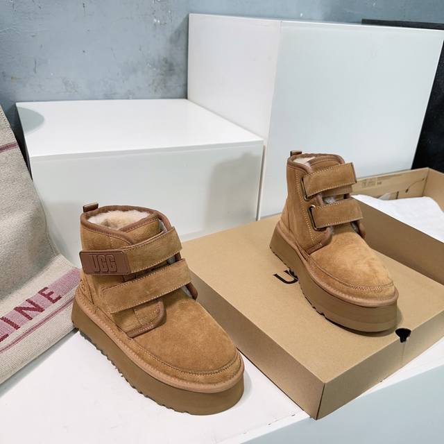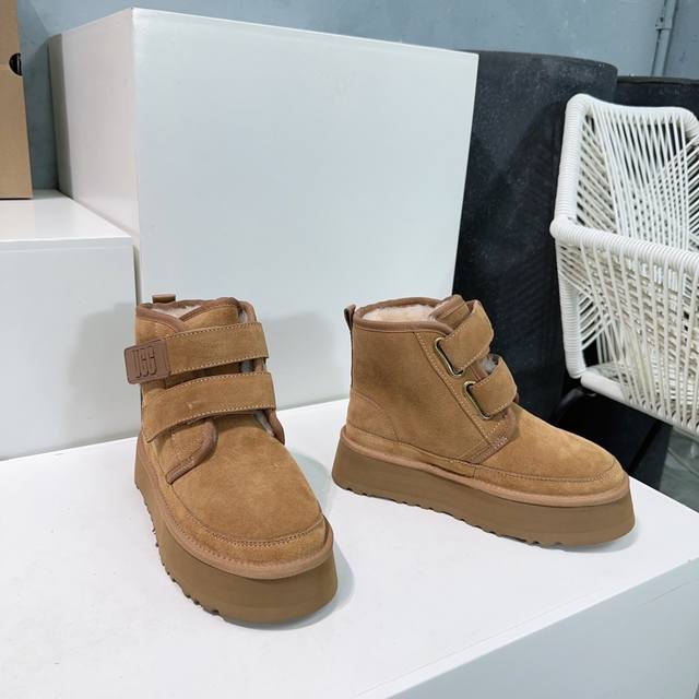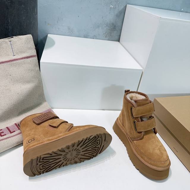 High-quality factory! Top-quality Ugg 2025 Autumn/Winter New Thick-soled Double Velcro Fashion Lambswool Snow Boots. Made entirely of sheepskin, warm and comfortable! These boots will turn heads wherever you go. The 5cm thick sole adds height and style. Guaranteed genuine wool, comfortable and warm! Sizes: 35-41. Custom orders are non-refundable. Comes with original packaging.