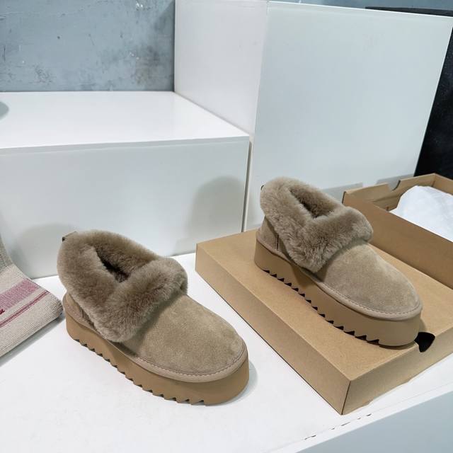 High-quality factory! Top-quality Ugg 25Ss Autumn/Winter New Mini Thick-Soled Furry Snow Boots. A must-have for Bella and Gigi, these boots are incredibly popular! Pair them with slouch socks for a sophisticated and stylish look, a pure American style. The thick sole accentuates long legs! Made with thick, genuine sheepskin for warmth and comfort! Features a lightweight PVC foam sole, approximately 4cm thick! Sizes: 35-41, 40-41. Custom orders are non-refundable. Comes with original packaging.