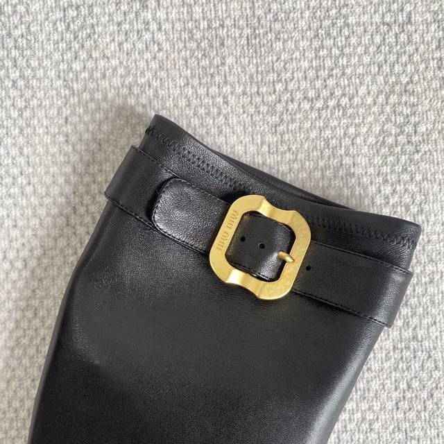 High-quality factory version. Miu Miu F026 2025 Autumn/Winter runway new high-heeled over-the-knee boots, stretchy boots. Runway style featured on the covers of major fashion magazines, worn by celebrities and Xiaohongshu bloggers. They look amazing on! You won't regret buying them; they're incredibly versatile. Developed with meticulous attention to detail. Upper: Custom imported elastic microfiber. Lining: Sheepskin lining. Sole: Italian imported genuine leather outsole. Heel height: 7.0cm. Sizes: 35-39. Size 40 can be customized, no returns or exchanges! Full packaging included.