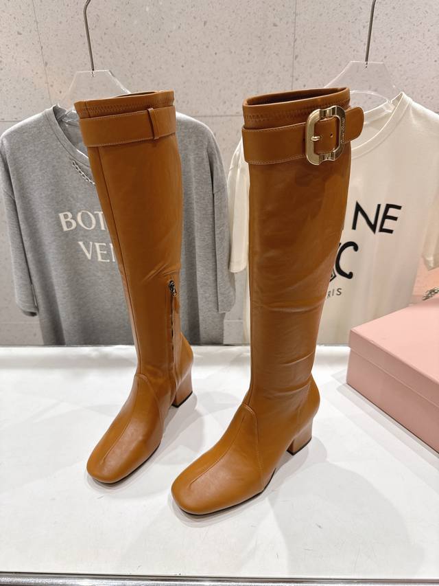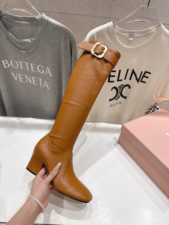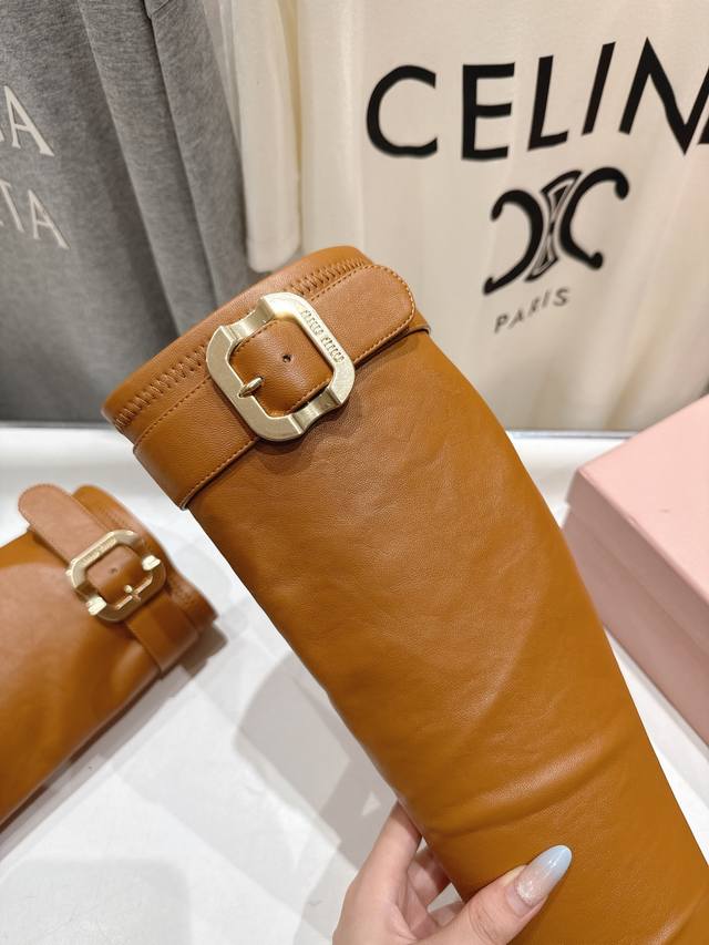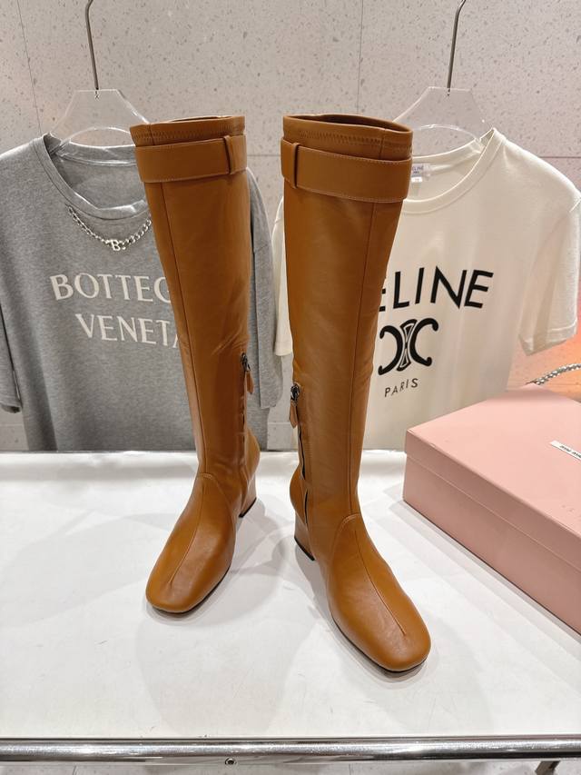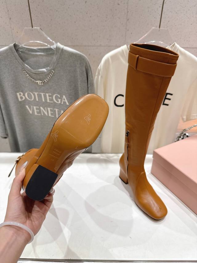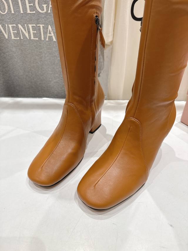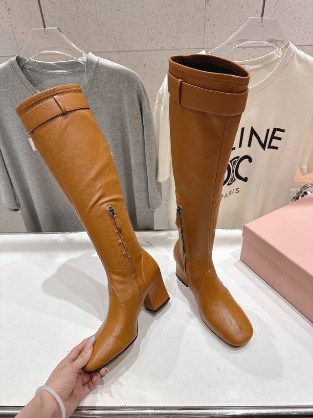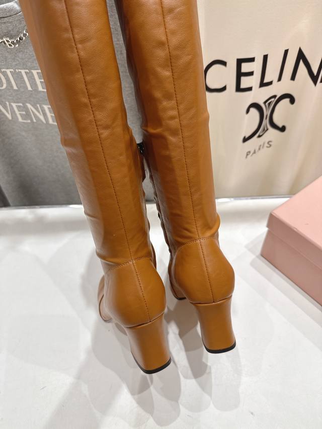 High-quality factory version. Miu Miu F026 2025 Autumn/Winter runway new high-heeled over-the-knee boots, stretchy boots. Runway style featured on the covers of major fashion magazines, worn by celebrities and Xiaohongshu bloggers. They look amazing on! You won't regret buying them; they're incredibly versatile. Developed with meticulous attention to detail. Upper: Custom imported elastic microfiber. Lining: Sheepskin lining. Sole: Italian imported genuine leather outsole. Heel height: 7.0cm. Sizes: 35-39. Size 40 can be customized, no returns or exchanges! Full packaging included.