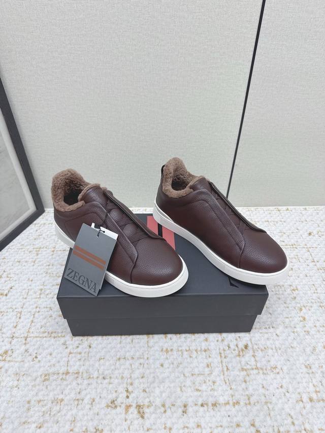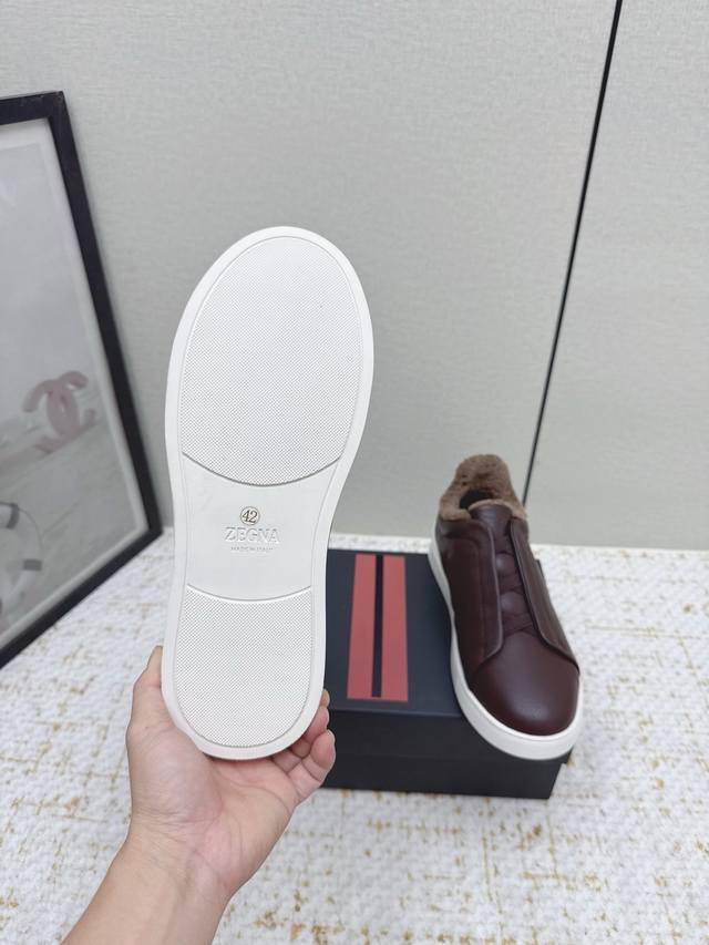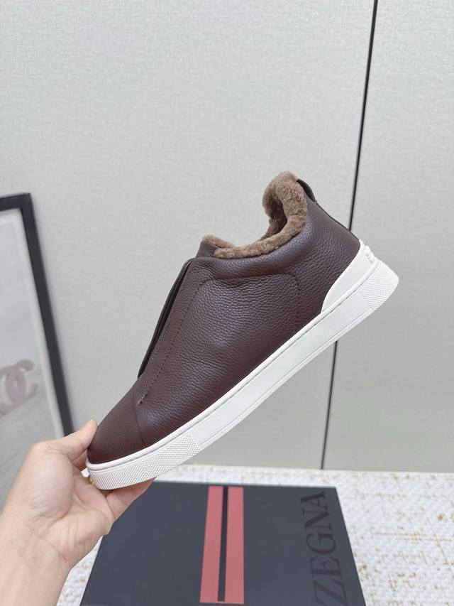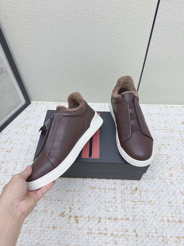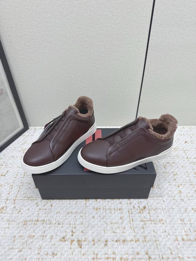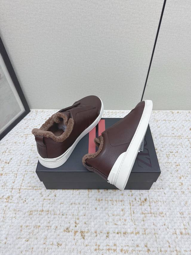 High-quality factory version DDD Wu Lei's celebrity style Zegna 25 Fall/Winter new low-top men's genuine wool-lined casual shoes, wool boots, cotton shoes, leather shoes, white shoes, Triplest men's slip-on luxury casual shoes, sneakers, white shoes, men's leather shoes, 1:1 original! DDD Material: Top layer cowhide DDD Lining: Genuine wool lining DDD Sizes: 39-46 45 46 Custom made DDD This style is leather shoes, please note the sizing DDD Note: Custom made without tags is available, please contact privately DDD