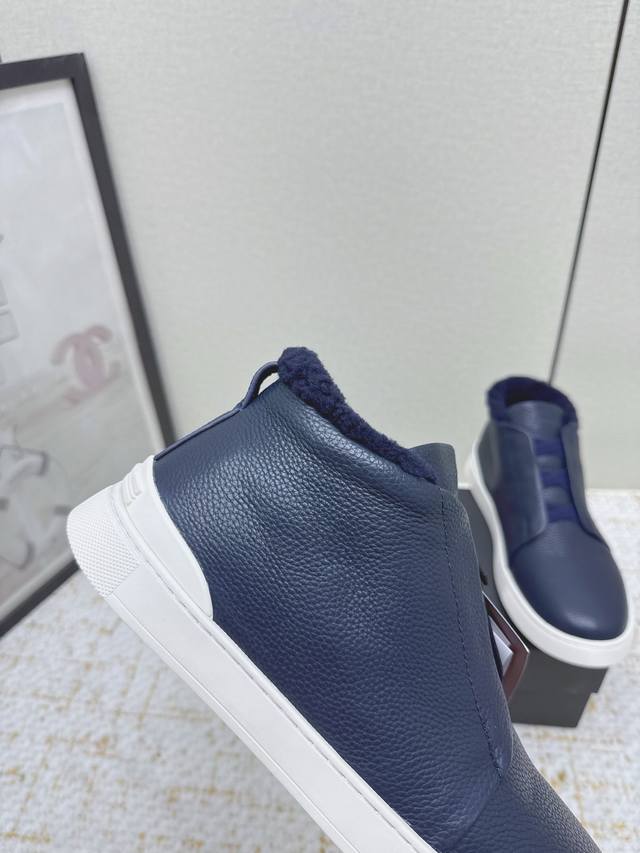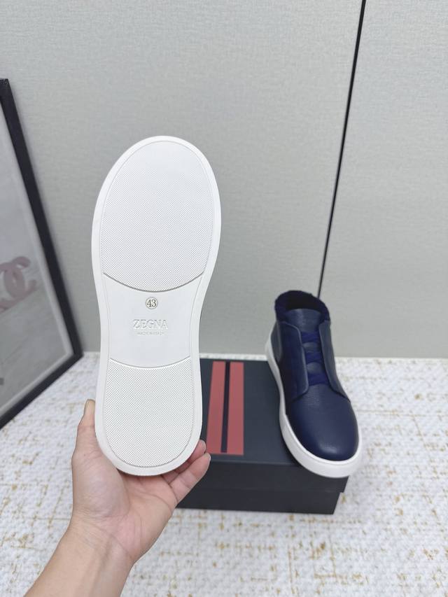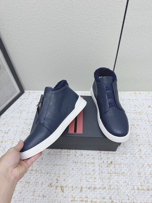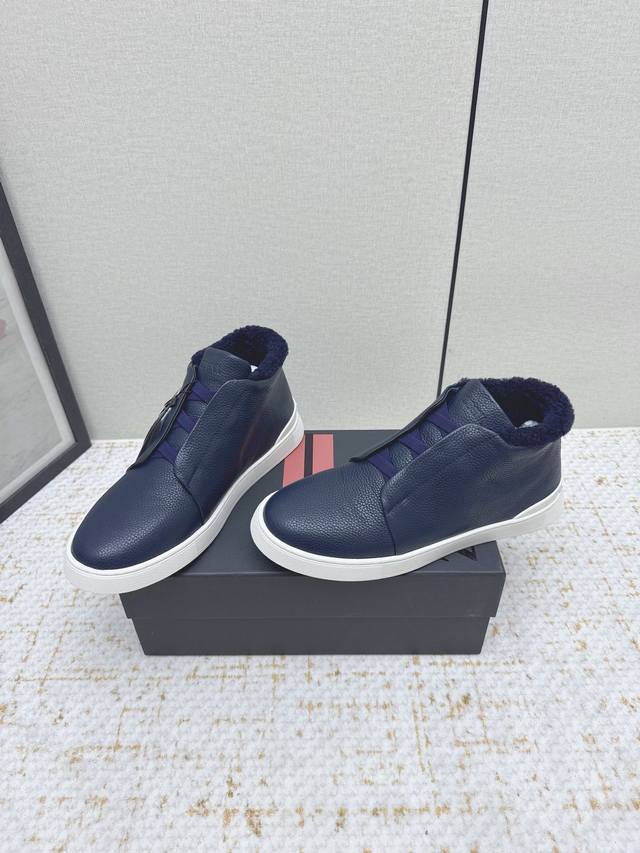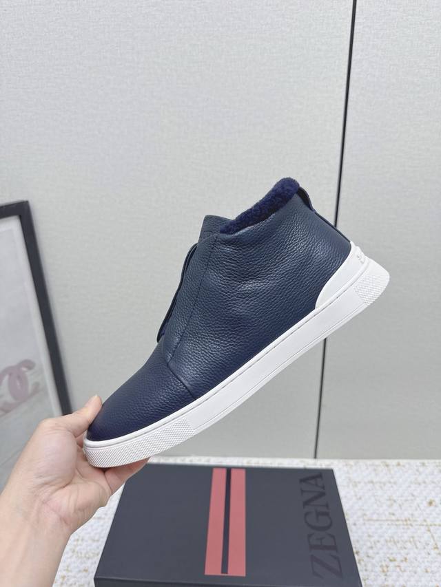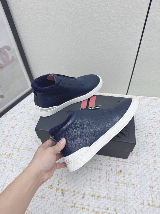 High-quality factory version DDD Wu Lei's celebrity style Zegna 25 Fall/Winter new high-top men's genuine wool-lined casual shoes, wool boots, cotton shoes, leather shoes, white shoes, Triplest men's slip-on luxury casual shoes, sneakers, white shoes, men's leather shoes, 1:1 replica! DDD Material: Top layer cowhide DDD Lining: Genuine wool DDD Sizes: 39-46 45 46 Custom made DDD This style is leather shoes, please note the sizing DDD Note: Custom made without tags is available, please contact privately DDD