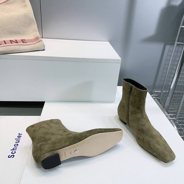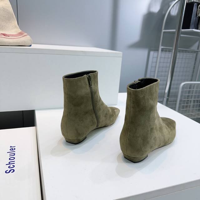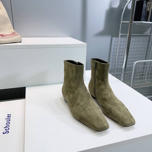 High-quality factory-made boots! Niche fashion brand Proenza Schouler 25Ss new fall/winter Ps stylish nude boots with flat heels, square toes, and side zippers!