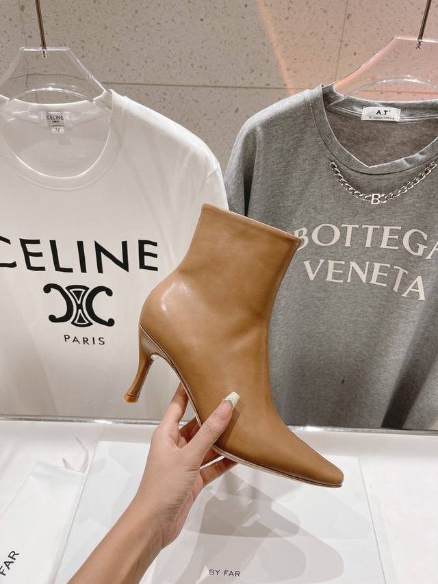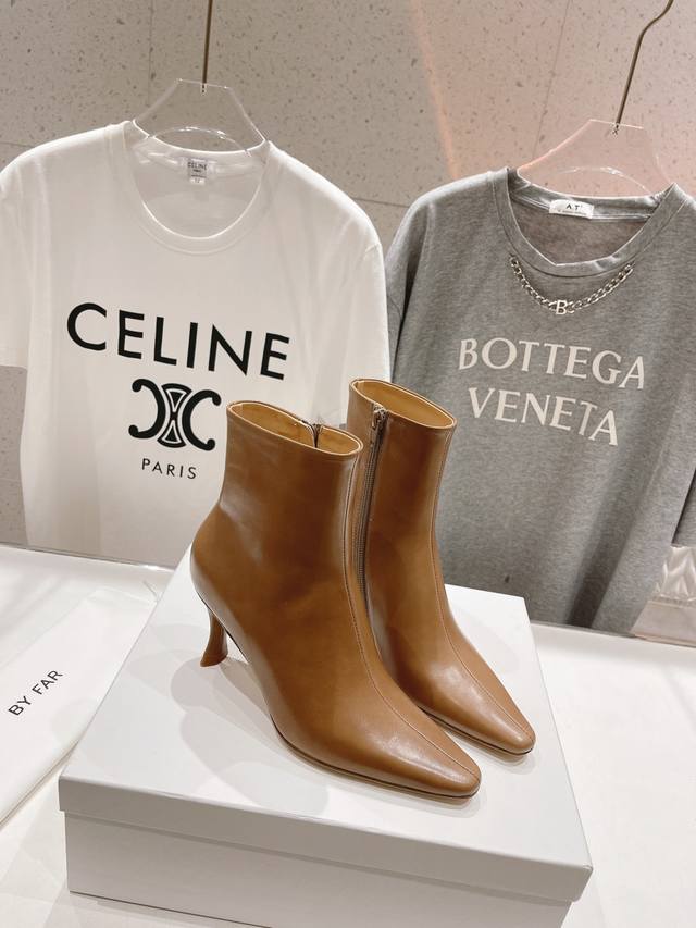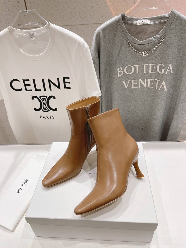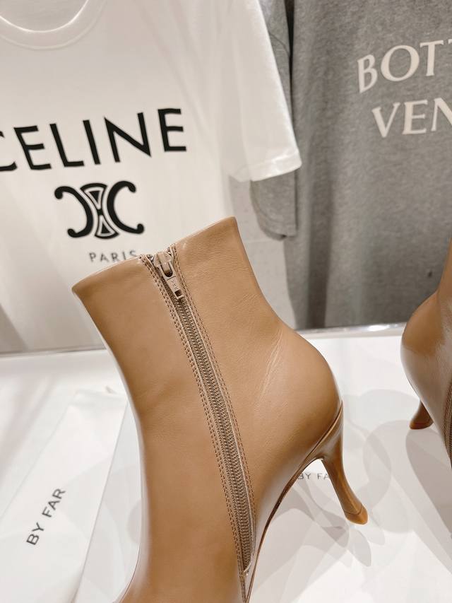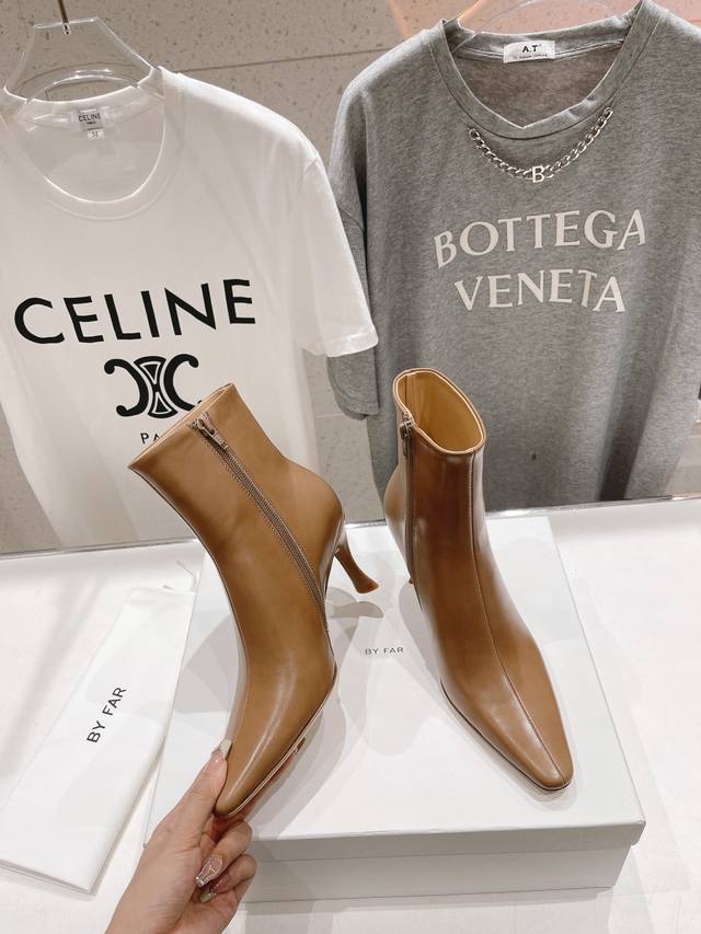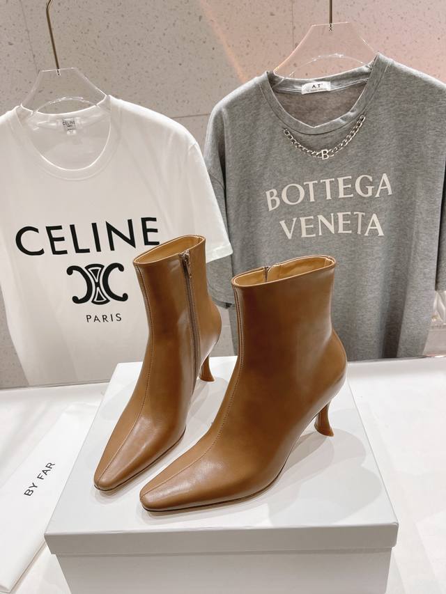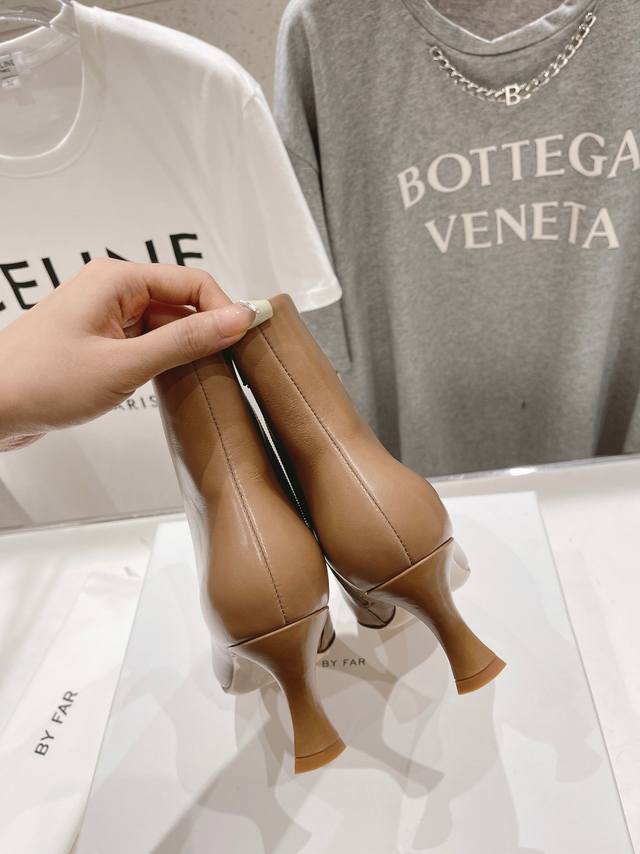 High-quality factory-made By Far 2025 Autumn/Winter new arrival, elegant full leather kitten heel boots, 1:1 authentic purchase. The square toe is more fashionable and elongates the legs. The side of the boots is designed according to the human leg shape, making them very delicate and beautiful on the foot. Material: Imported horse oil cowhide suede. Lining: Cowhide lining with insole. Heel height: 7.5cm. Outsole: Italian genuine leather outsole. Sizes: 35-39. Size 40 is custom-made and non-refundable.