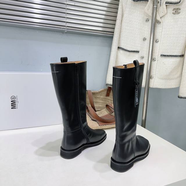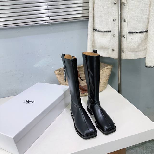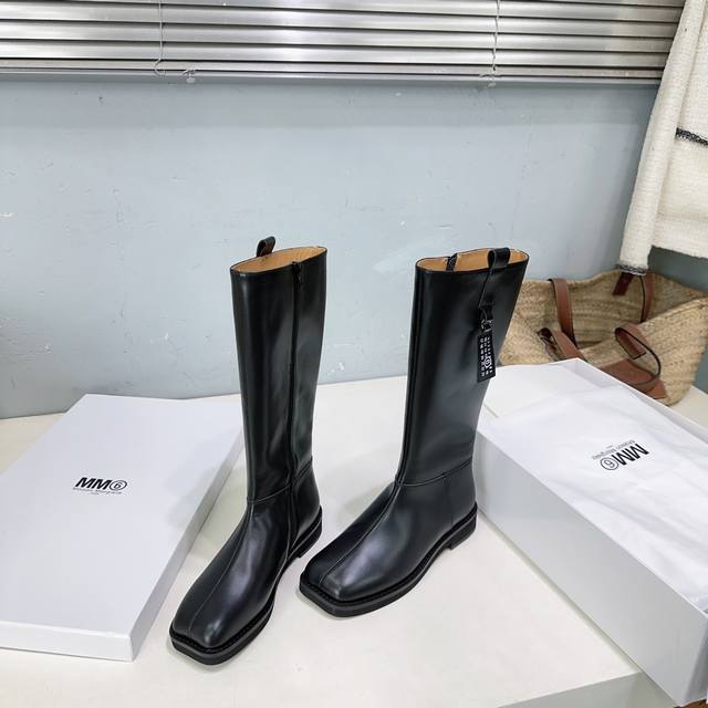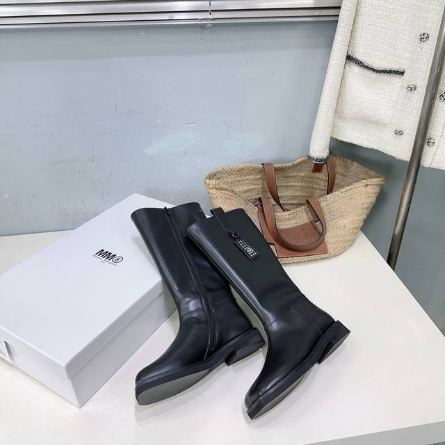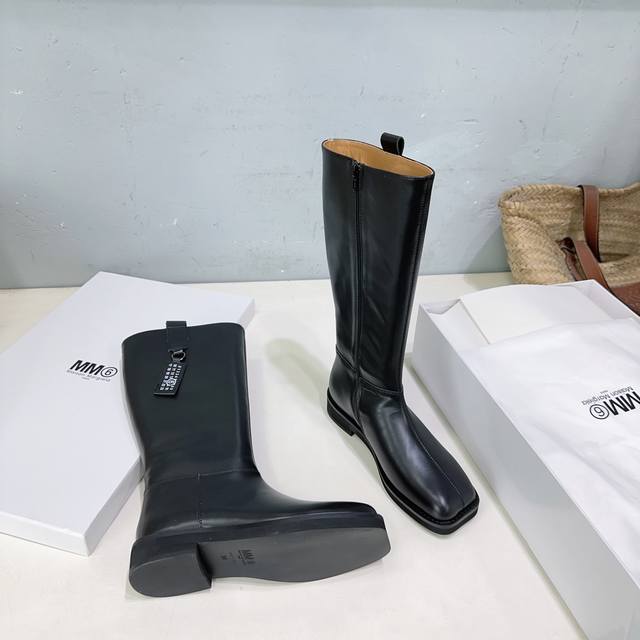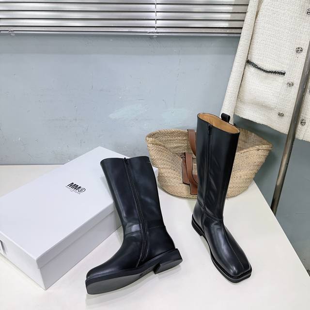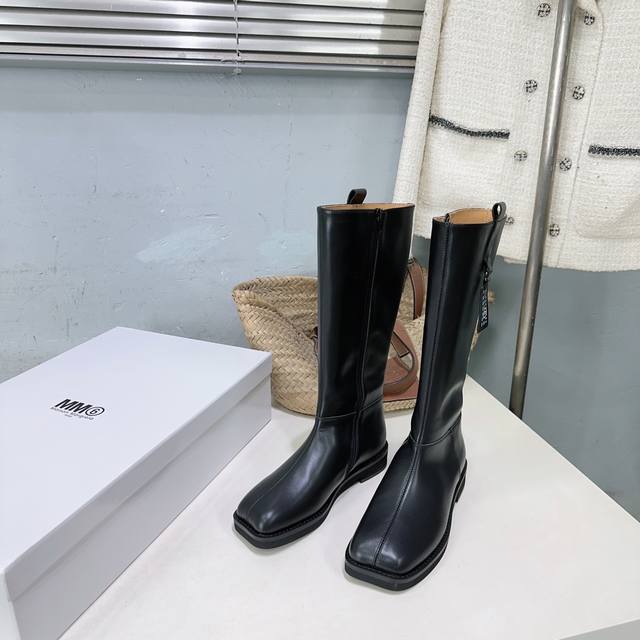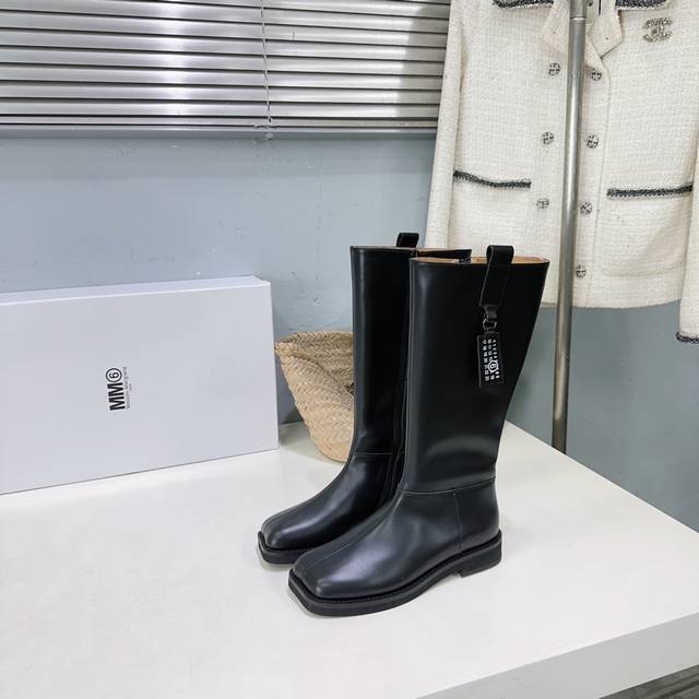 High-quality factory-made cowhide upper! 480 suede! Niche trendy brand Mm6 Maison Margiela 2025 Fall/Winter new arrival: super stylish flat-heeled square-toe high-top boots, a hot autumn/winter style! Iconic number tag decoration, super high-end feel! Looks amazing on feet, and most importantly, super comfortable, suitable for all body types. A must-buy! Y-version development, material and color consistent with the original, midsole, and heel are all Y-version molded, details are perfect~ DDD Upper made of imported calfskin and cow suede DDD Insole made of imported water-dyed sheepskin DDD Original mold combination rubber outsole DDD Sizes: 35-41, 40 and 41 are non-refundable DDD Comes with original packaging DDD
