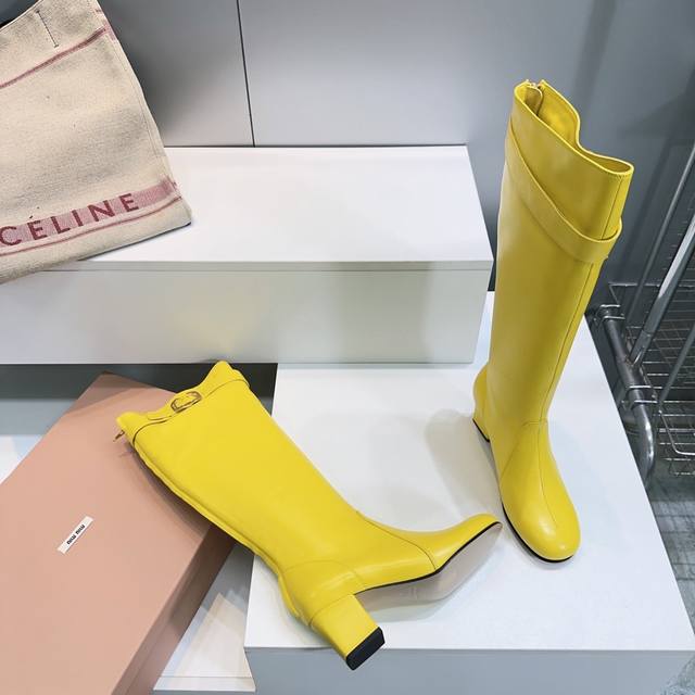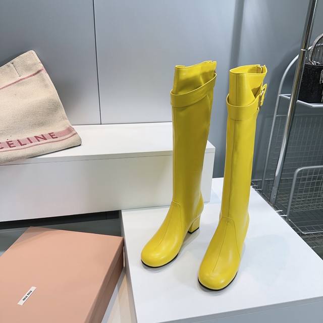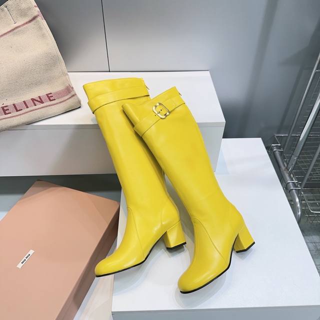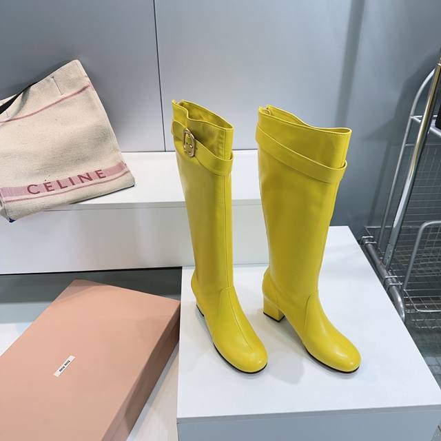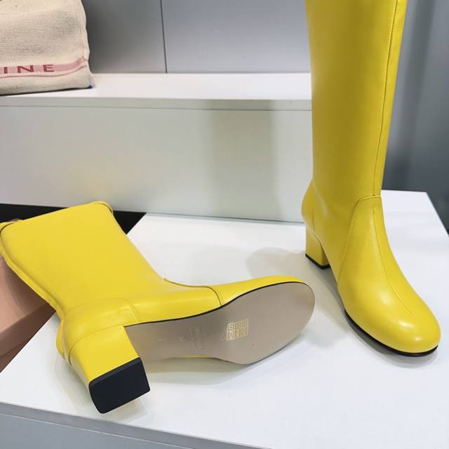 High-quality factory-made long boots! Top-quality Miu Miu 2025 Autumn/Winter new round-toe chunky heel ankle boots, a hot item promoted on the official website this year. Miu has always been known for its girly and bling-bling style, and these autumn/winter boots are no exception! The shoe shape is elegant, simple and stylish! The chunky heel design elongates the leg line, making it easy for fashion-loving ladies to wear! An absolute must-have item for this autumn/winter season! Upper made of imported top-grain cowhide, insole made of sheepskin, Italian imported genuine leather outsole. Heel height: approx. 6cm. Sizes: 35-40. Size 40 is custom-made and non-refundable. Comes with original packaging.