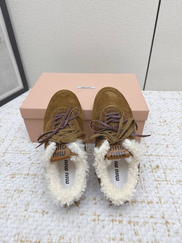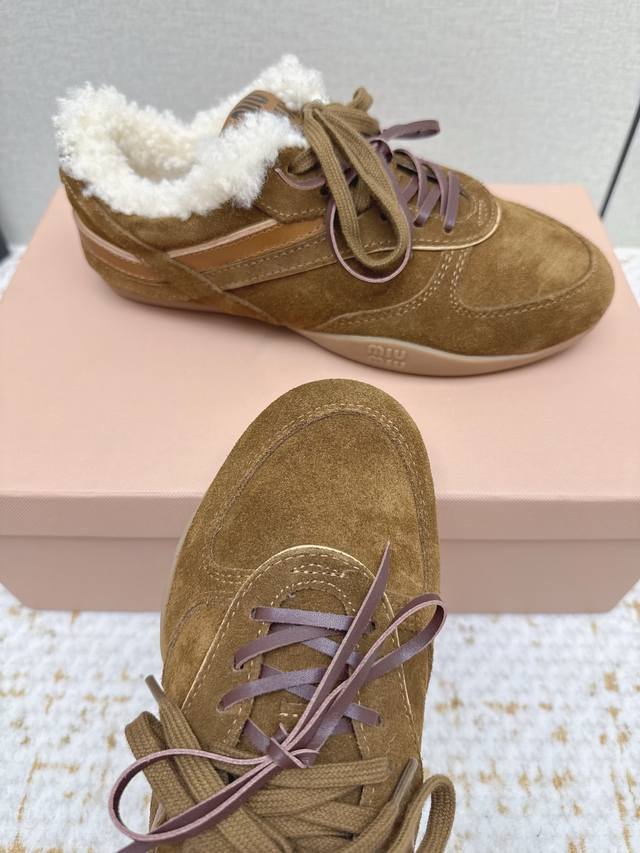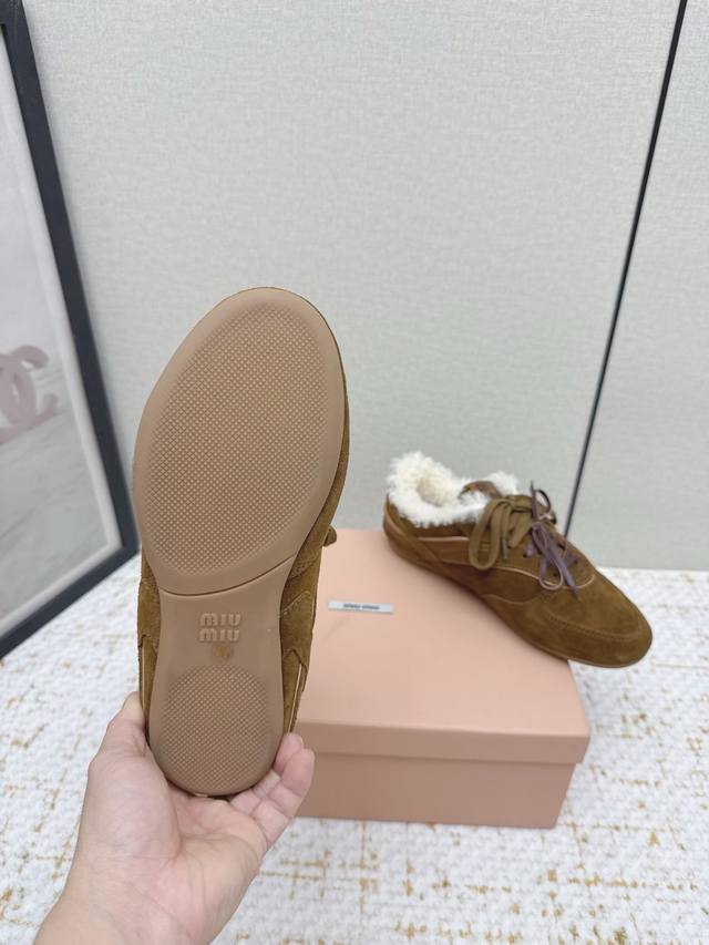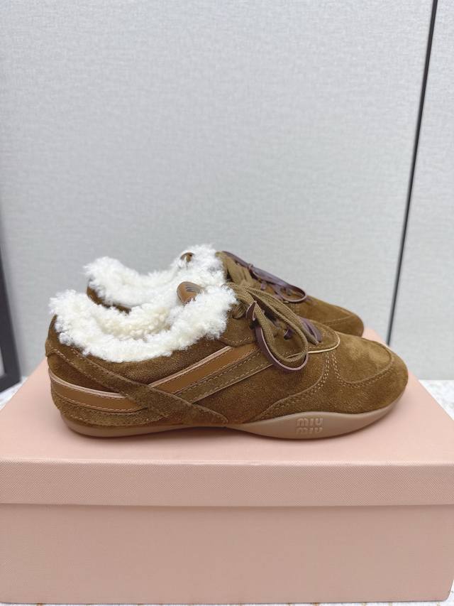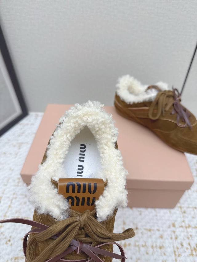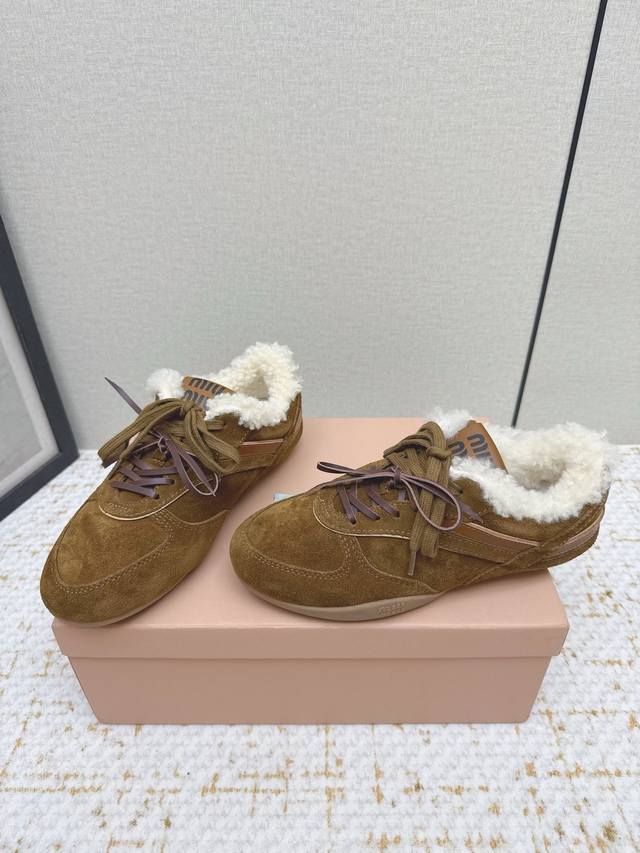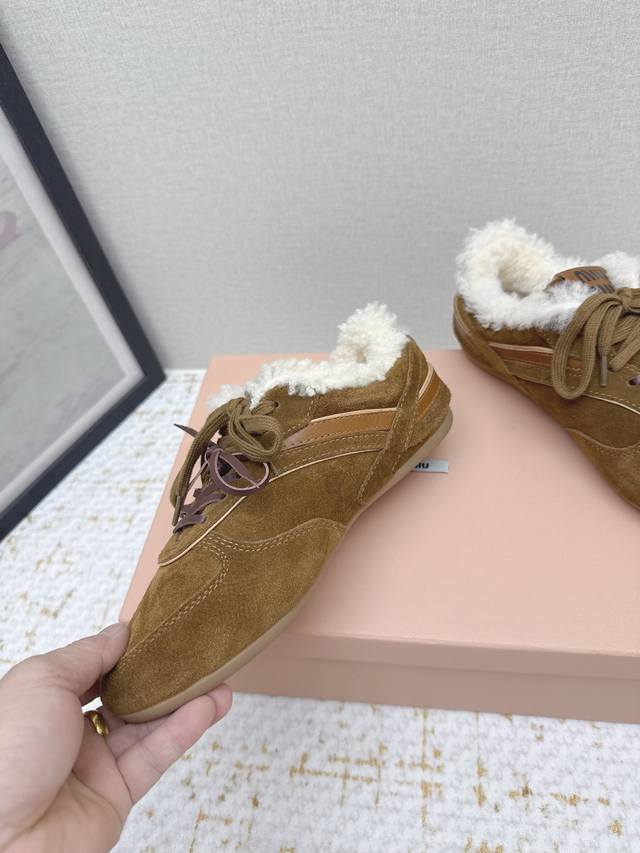 High-quality factory-made Miu Miu latest runway retro furry shoes, German training shoes. A top-selling item from the official runway, recommended by numerous celebrities and fashion bloggers. Miu style remains as popular as ever, fashionable and versatile, suitable for both sweet and edgy looks. Super youthful and incredibly versatile, whether worn barefoot or with socks. Upper: Imported retro calfskin, genuine wool lining. Sole: Original rubber outsole. Size: 35-40. Size 40 is custom-made and non-refundable.