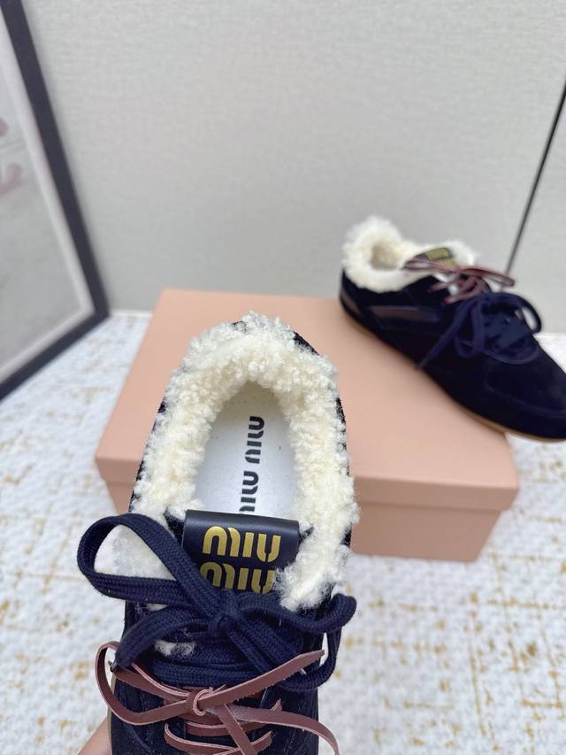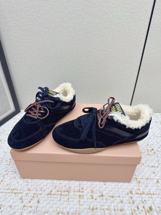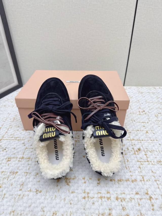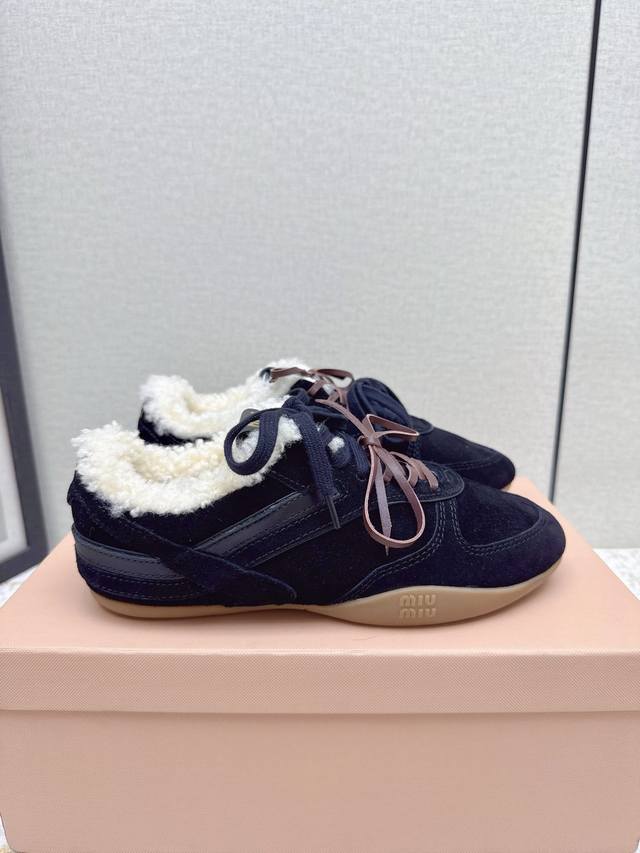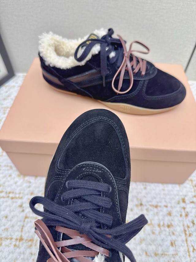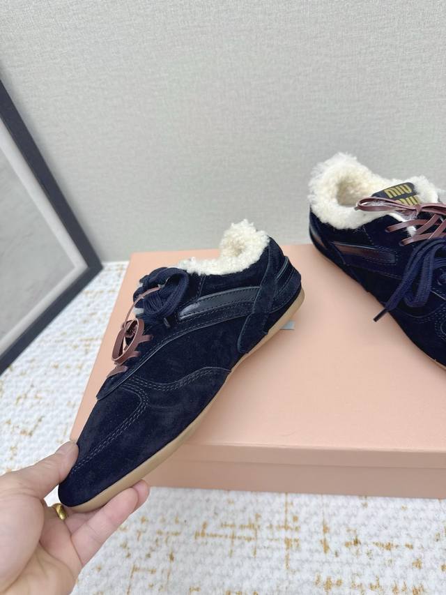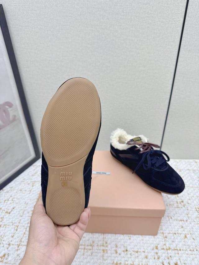 High-quality factory-made Miu Miu latest runway retro furry shoes, German training shoes. A top-selling item from the official runway, recommended by numerous celebrities and fashion bloggers. Miu style remains as popular as ever, fashionable and versatile, suitable for both sweet and edgy looks. Super youthful and incredibly versatile, whether worn barefoot or with socks. Upper: Imported retro calfskin, genuine wool lining. Sole: Original rubber outsole. Size: 35-40. Size 40 is custom-made and non-refundable.