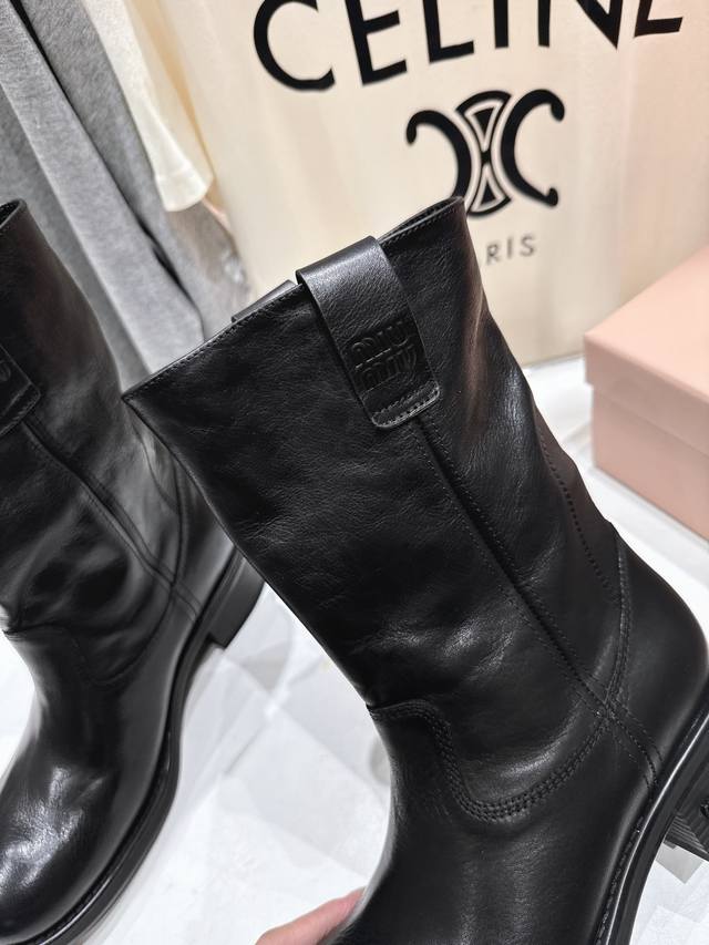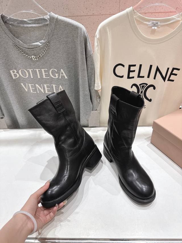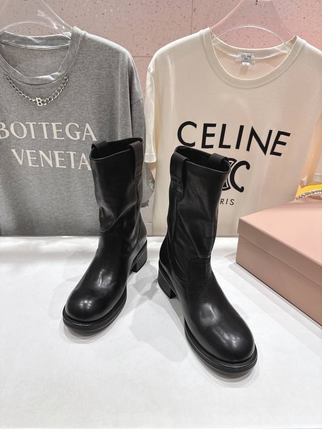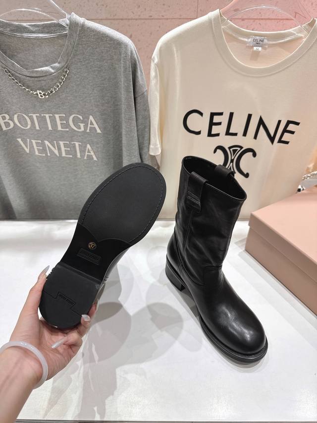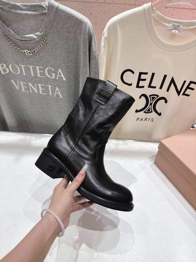 High-quality factory-made Miumiu F022 25Ss Fall/Winter runway Western series retro distressed slouch boots, motorcycle boots, Martin boots. These are the most worthwhile boots to buy this year, bar none! Many internet celebrities and stars have been seen wearing them. This fall/winter Miumiu is undeniably cool and sexy. Limited edition, very hard to find in stores. They look stiff, but are actually incredibly soft and comfortable! Amazing feel! The wide boot shaft provides a relaxed fit regardless of leg size and makes legs appear straight! Versatile! ZP developed hardware, custom-made true-to-the-pattern outsole. Upper: Original custom imported calfskin. Lining: Imported water-dyed cowhide. Outsole: Original molded outsole. Sizes: 35-39, 40 can be customized, no returns or exchanges. Full packaging included.