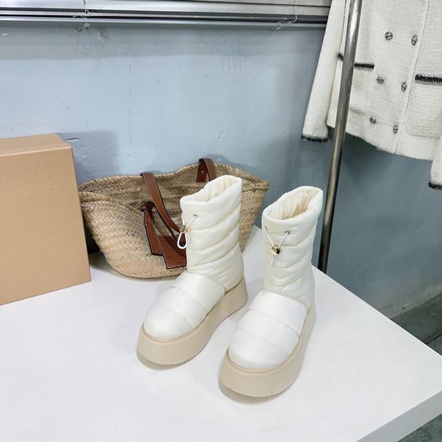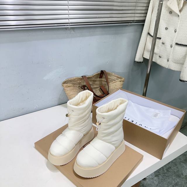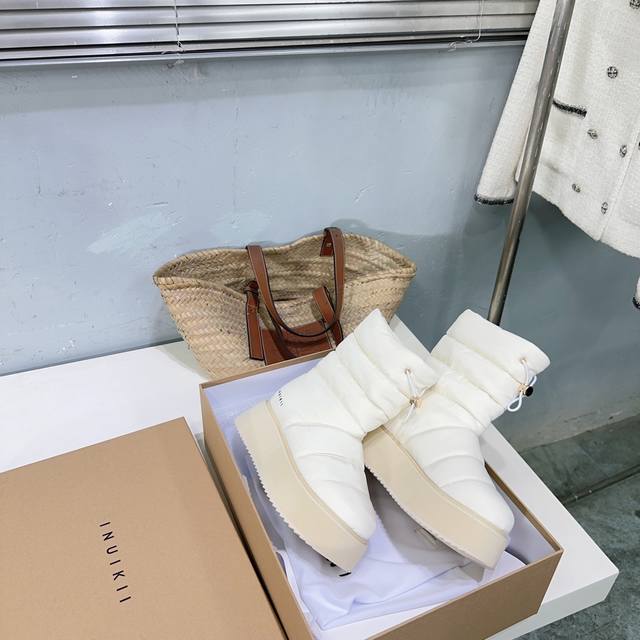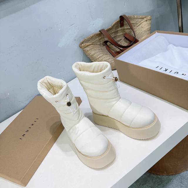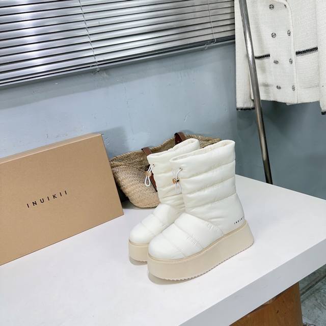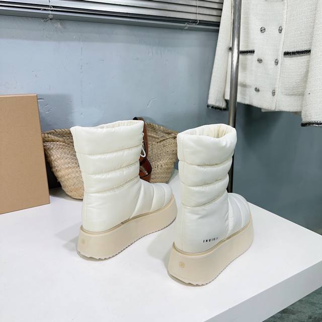 High-quality factory-made platform wool snow boots from the niche trendy brand Inuikil25Ss, perfect for autumn and winter! Exclusive top-quality product! Highly recommended! Stylish, versatile, and warm boots! And you're unlikely to see someone else wearing the same style! A must-have eye-catching item this winter! The upper is made of original waterproof nylon technical fabric! The inner lining is pure wool, comfortable and warm! Original molded one-piece foamed non-slip outsole, approximately 4cm thick. Sizes: 35-40. Size 40 is custom-made and non-refundable. Comes with original packaging.