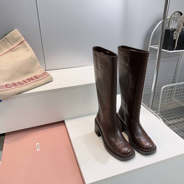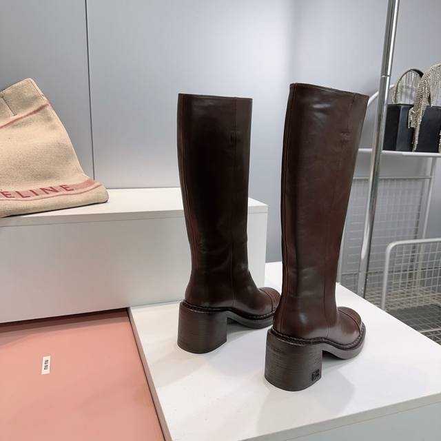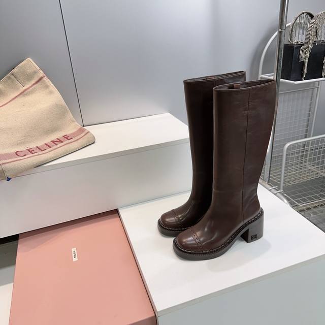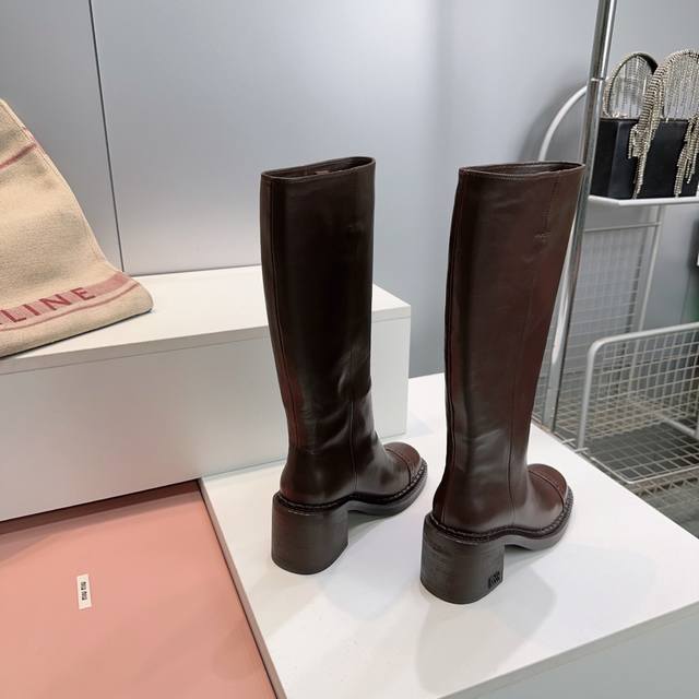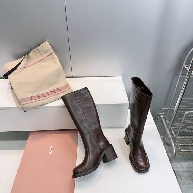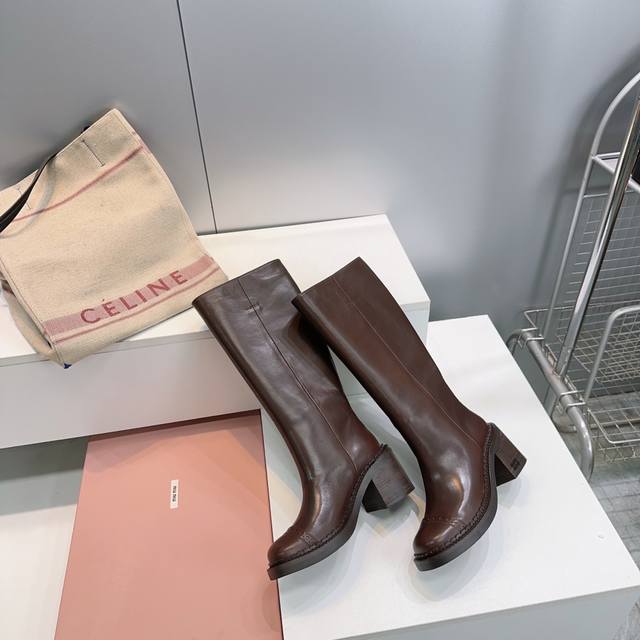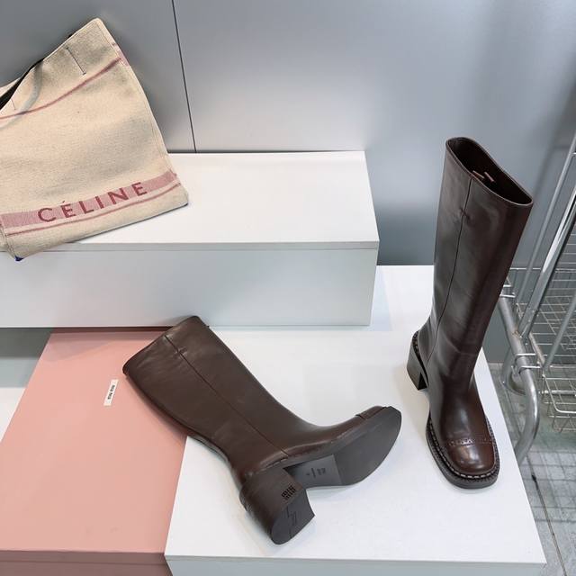 High-quality factory-made short boots! Length 720! Top quality Miu Miu 2025 Fall/Winter new chunky high-heeled riding boots, long boots, short boots series. Straight-leg design, tough and domineering, cool and stylish on the feet, super aura. Simple and versatile design, you can't go wrong with any style! Upper made of imported calfskin, insole made of sheepskin, original mold rubber outsole. Heel height: 7cm. Sizes: 35-40. Size 40 is non-refundable. Comes with original packaging.
