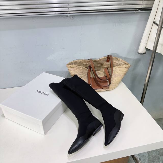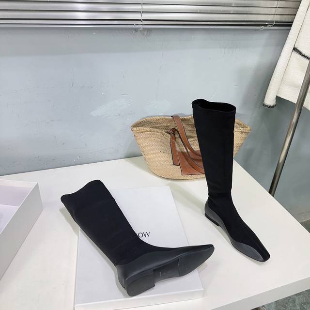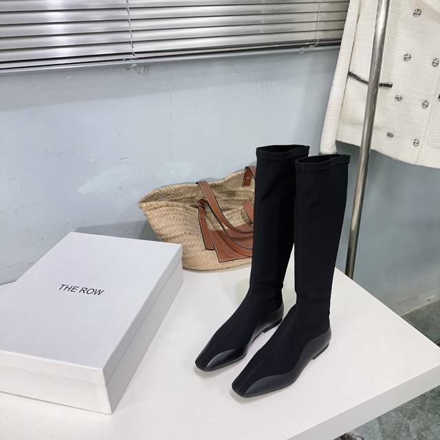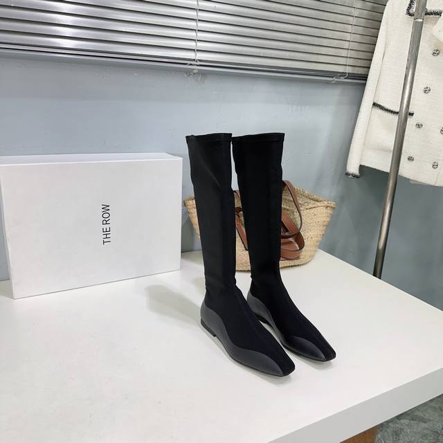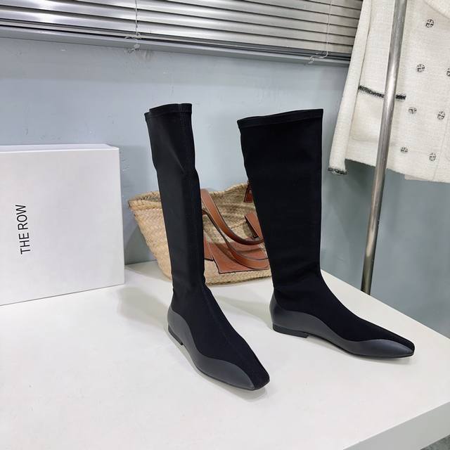 The Row 25Ss Autumn/Winter latest hot-selling square-toe flat black warrior elastic boots! Flat ninja sock boots! Ballet flats among short boots! Simple and exquisite style, as always simple, super sexy and comfortable on the feet! Simple design, clean and smooth lines, although there are not too many embellishments, it is really high-end and versatile. A top-quality sandal, a beautiful shoe that brightens up the whole autumn and winter!