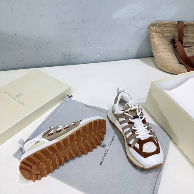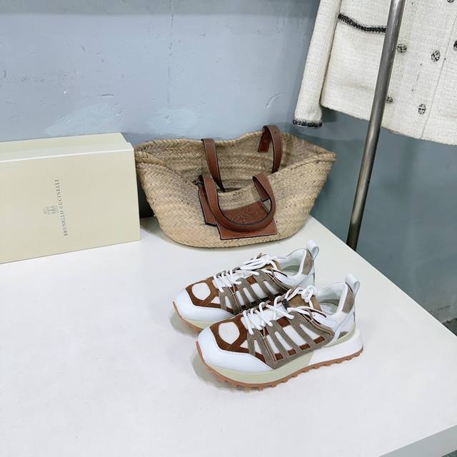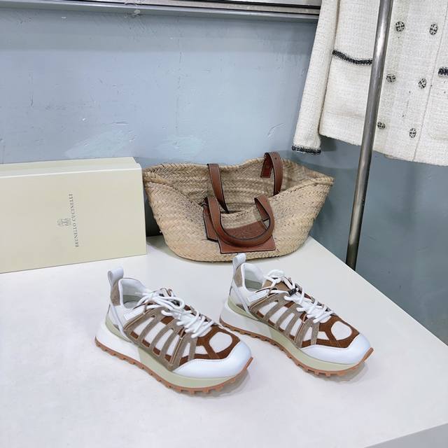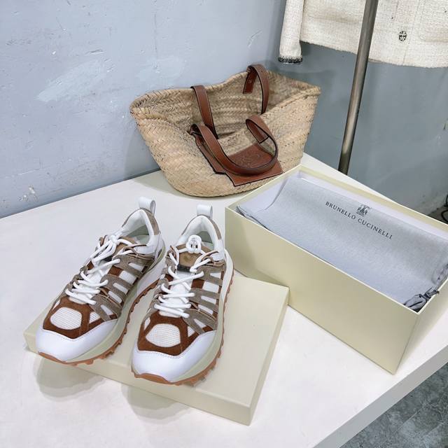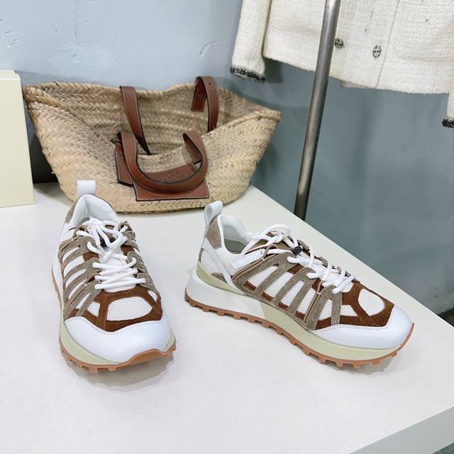 High-quality factory-made women's and men's shoes! Niche trendy brand couple shoes! Brunellocucinelli Bc25 Autumn/Winter New Arrival Thick-soled Casual Sports Shoes with Beaded Decoration. Original 1:1 replica, high-gloss cow suede and sheepskin splicing special materials. Features a colorfast metal chain and bubble-free hardware. The upper is made of imported cow suede splicing with technical mesh fabric. The inner lining is breathable mesh fabric with sheepskin insole. The insole is made of high-density elastic latex. The original TPR foam outsole is lightweight and comfortable. Sizes: Women's 35-40 (40 is custom-made and non-refundable); Men's 40-45 (45 is custom-made and non-refundable). Comes with original packaging .