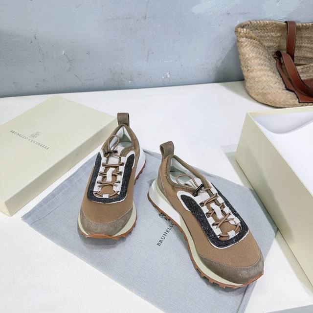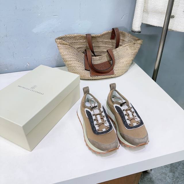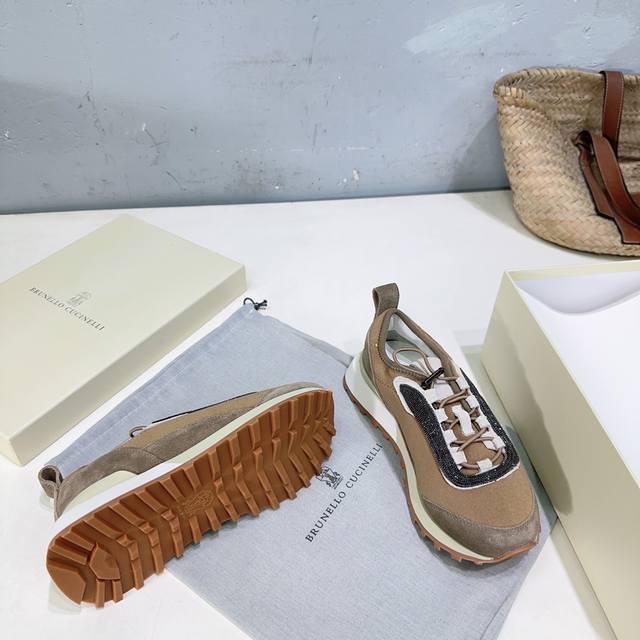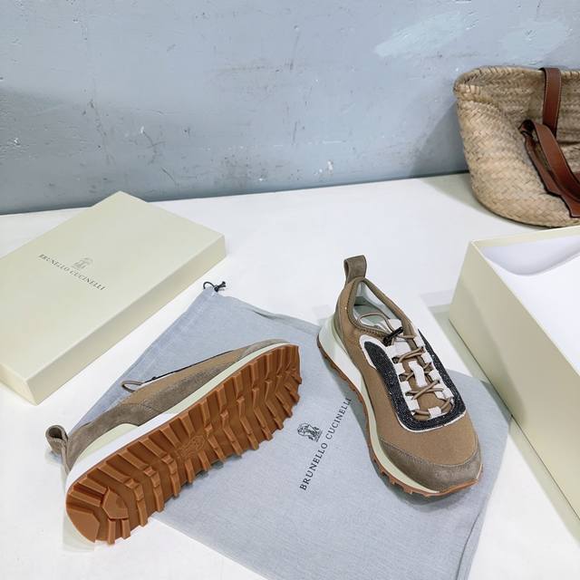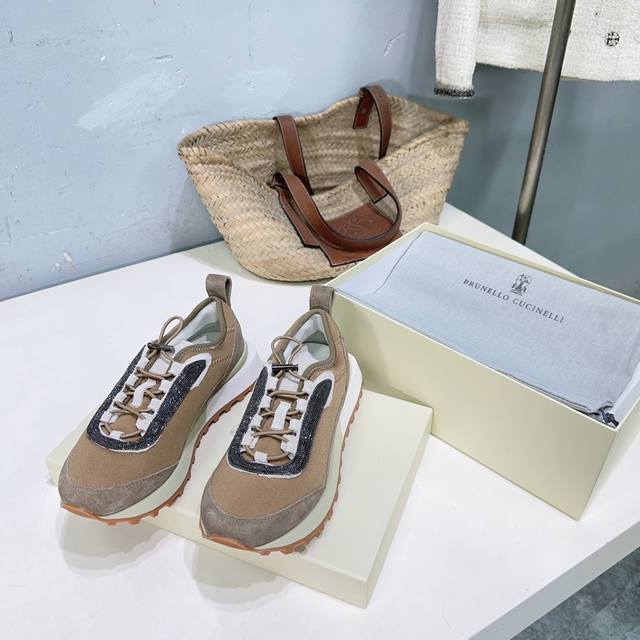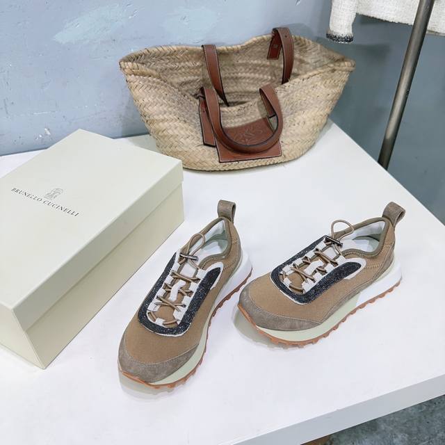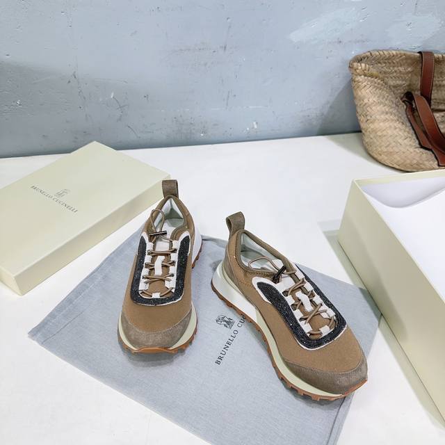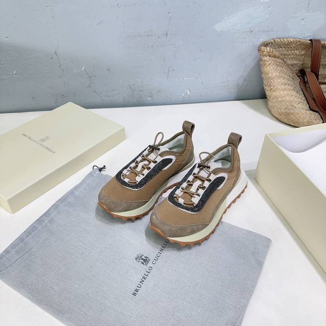 High-quality factory-made women's and men's shoes! Niche trendy brand couple shoes! Brunellocucinelli Bc25 Autumn/Winter New Arrival Thick-soled Casual Sports Shoes with Beaded Decoration. Original 1:1 replica, high-gloss cow suede and sheepskin splicing special materials. Features a colorfast metal chain and bubble-free hardware. The upper is made of imported cow suede splicing with technical mesh fabric. The inner lining is breathable mesh fabric with sheepskin insole. The insole is made of high-density elastic latex. The original TPR foam outsole is lightweight and comfortable. Sizes: Women's 35-40 (40 is custom-made and non-refundable); Men's 40-45 (45 is custom-made and non-refundable). Comes with original packaging .