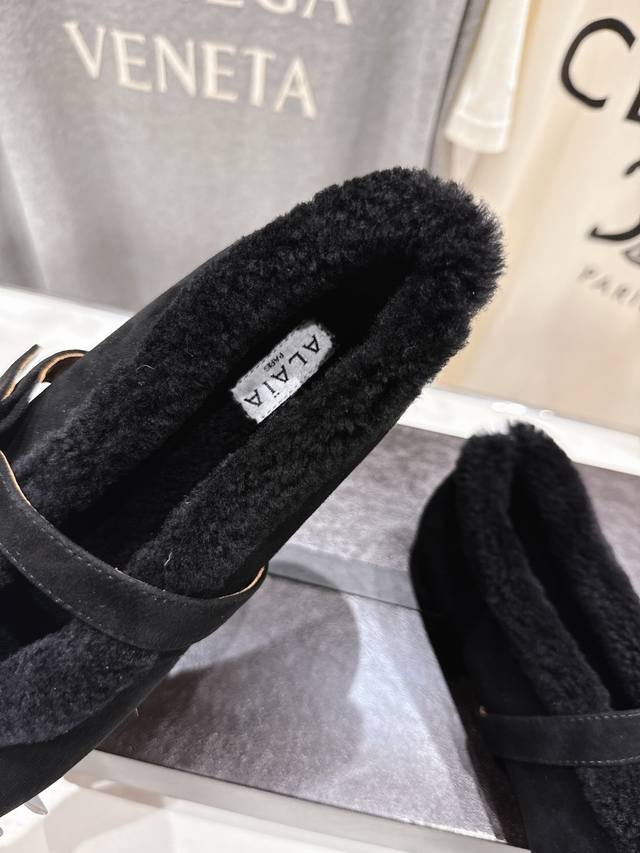 High-quality factory-made wool-lined Mary Jane ballet flats/casual shoes, exclusive new product from Alaia 25Ss Autumn/Winter runway style. A popular wool-lined flat shoe, similar to the one worn by Teresa Cheung, romantic and charming, comfortable and versatile. It easily complements different styles and looks, whether it's jeans, suit pants, or a pleated skirt, elevating your outfit to a fashionable, elegant, and sophisticated level. Material: Original custom-made top-grain cowhide leather. Insole : Imported wool . Outsole: Original private mold rubber non-slip outsole. Sizes: 35-39, 40.41. Custom orders are non-refundable and non-exchangeable.