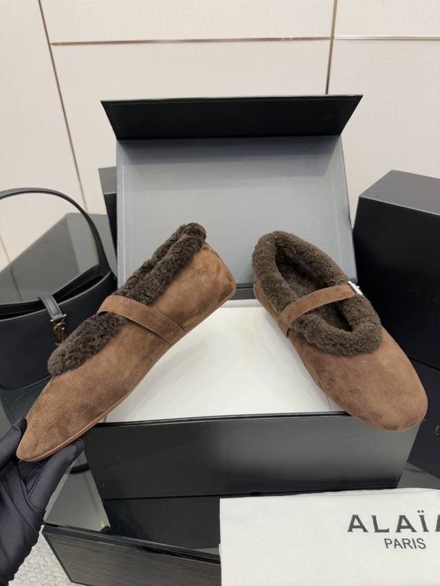 High-quality factory-made wool-lined Mary Jane ballet flats/casual shoes. Exclusive new product from Alaia (Alaia 25Ss). Autumn/Winter runway style. A popular wool-lined flat shoe with a sweet and cool fairy-like style, as seen on Teresa Cheung. Romantic, charming, comfortable, and versatile. Easily paired with different styles and looks, whether it's jeans, suit pants, or a pleated skirt, it elevates your outfit to a fashionable, elegant, and sophisticated level. Material: Original custom-made wool. Lining: Imported wool. Outsole: Original private mold rubber non-slip outsole. Sizes: 35-39. Sizes 35, 40, 41, and 42 are custom-made and non-refundable.