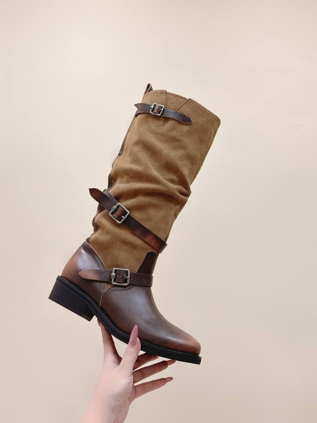 Icedust 25Ss Autumn/Winter New Slouch Boots. Calling them the best-looking slouch boots of the year is no exaggeration. Retro, versatile, and effortlessly simple. Upper: Cowhide. Lining: Sheepskin. Heel height: 3cm. Outsole: Original mold. Size: 35-39. 40.41 Made to order, no returns or exchanges.