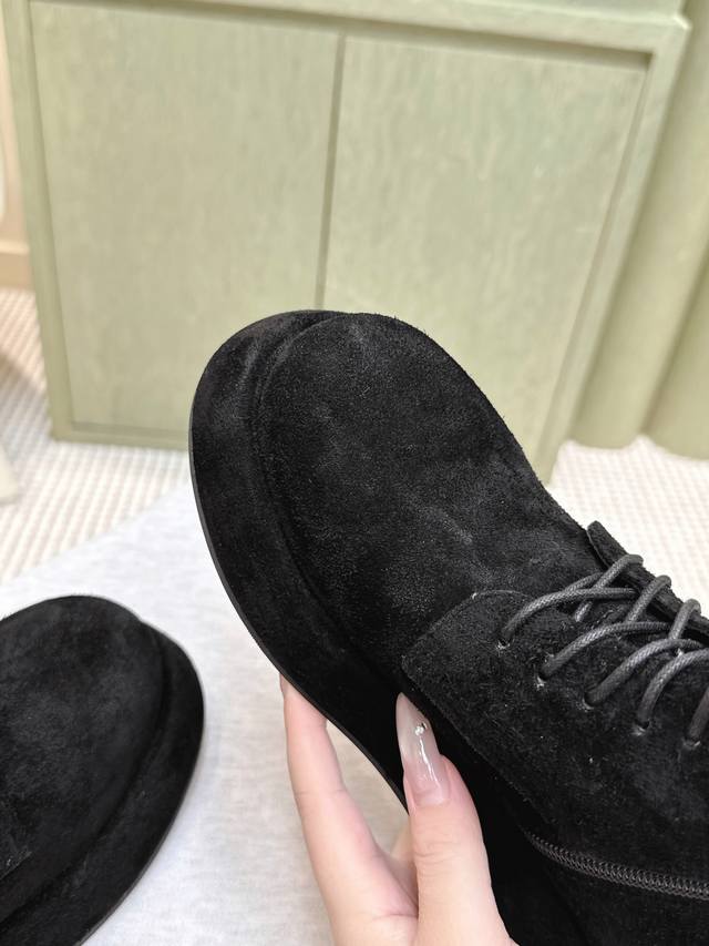 High-quality import | D0013 The Row genuine leather French retro round toe minimalist versatile flat platform Chelsea ankle boots. These are the most comfortable shoes I've ever worn! They're so soft! Those prone to blisters should definitely get these! They have a slightly sophisticated yet simple feel. Besides being stylish, they're so comfortable you won't want to take them off! They go perfectly with jeans, trousers, and skirts. Material: Original imported suede; Sole: Original sole; Size: #35-41 (40, 41 are custom-made, no returns or exchanges).